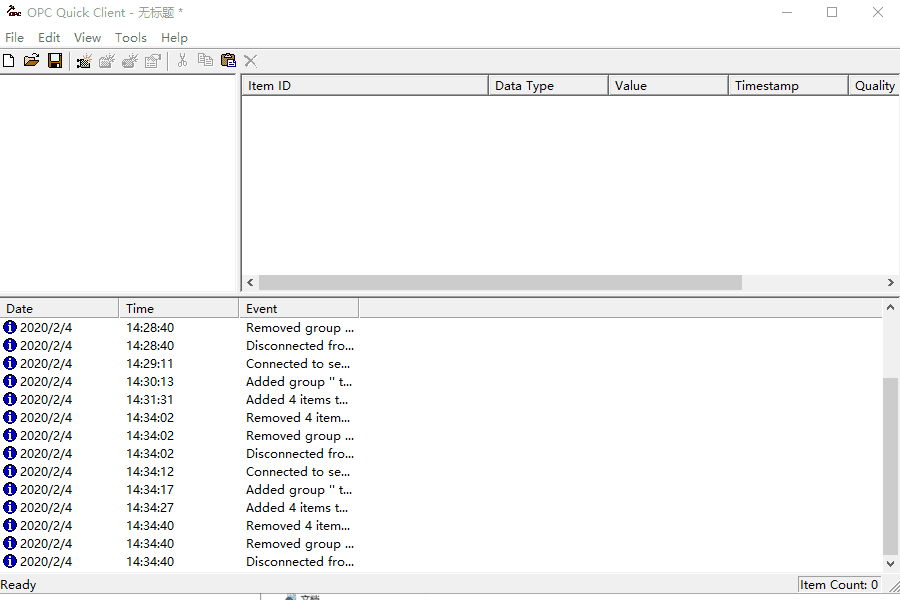 将 OPC 调试工具复制到 OPC 服务所在的电脑上。打开 OPC Client 工具。