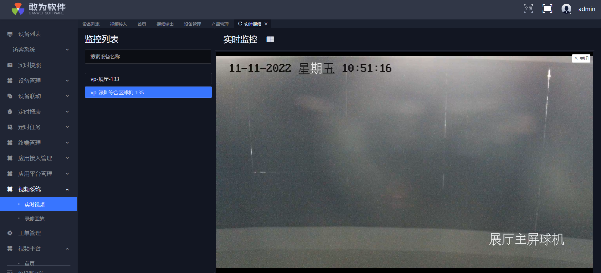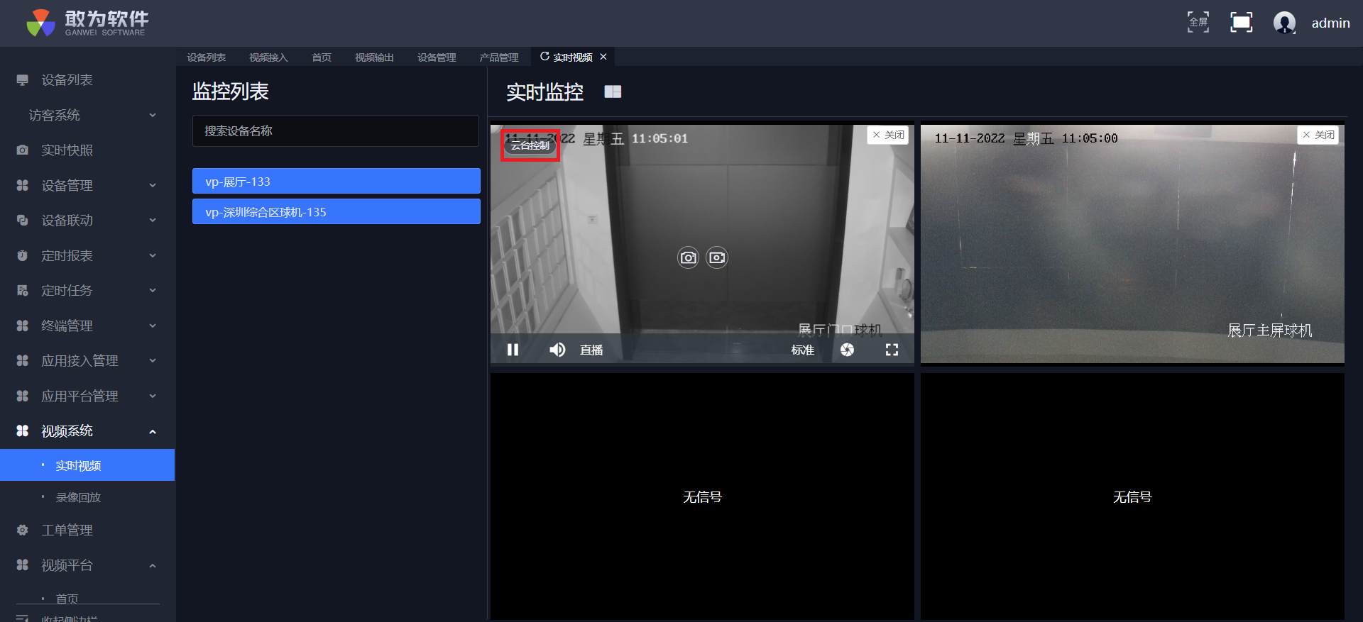 可支持查看接入系统的摄像头的实时视频、云台控制,支持查看录像回放及快照。