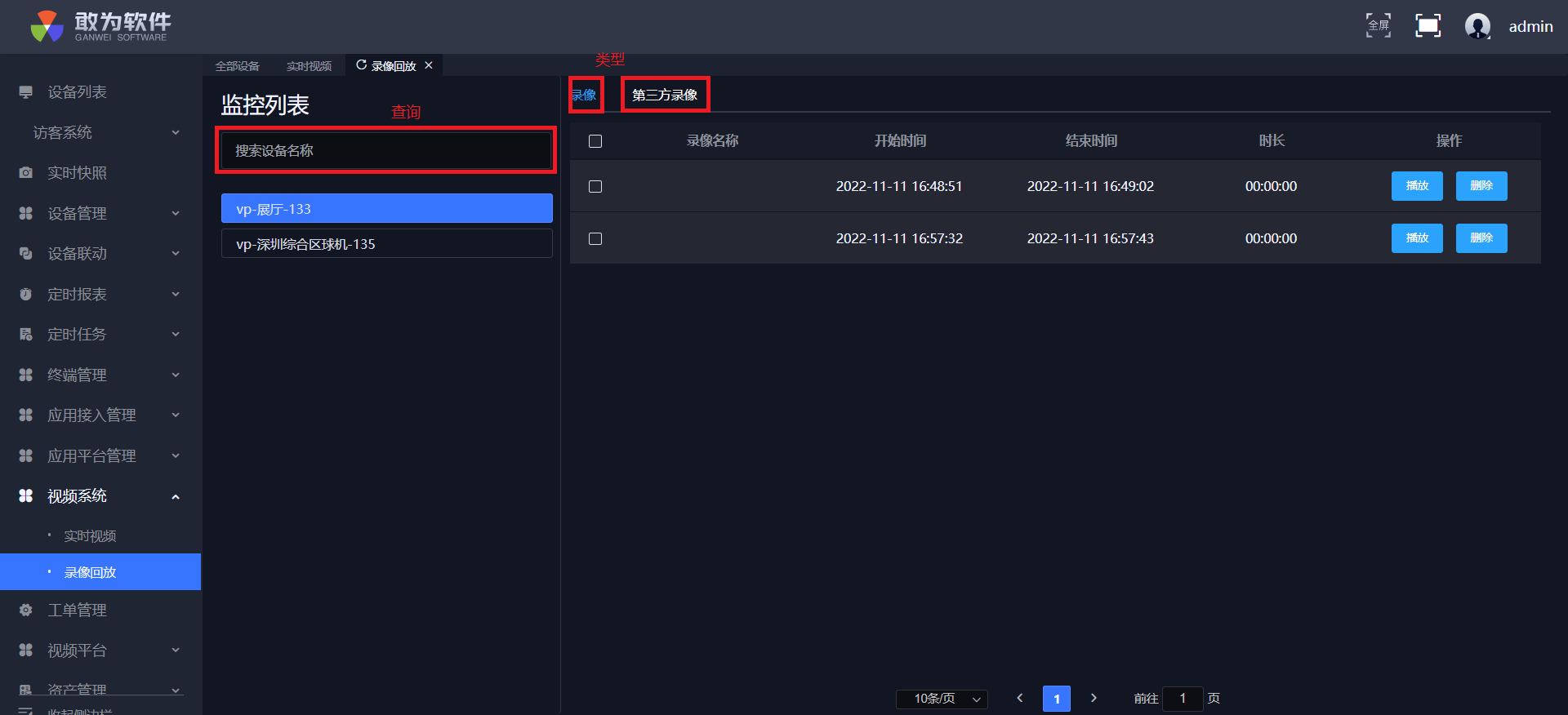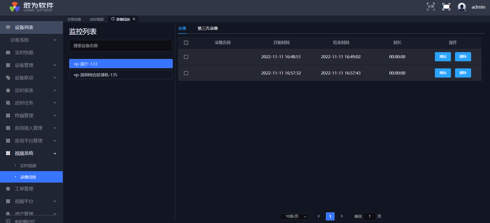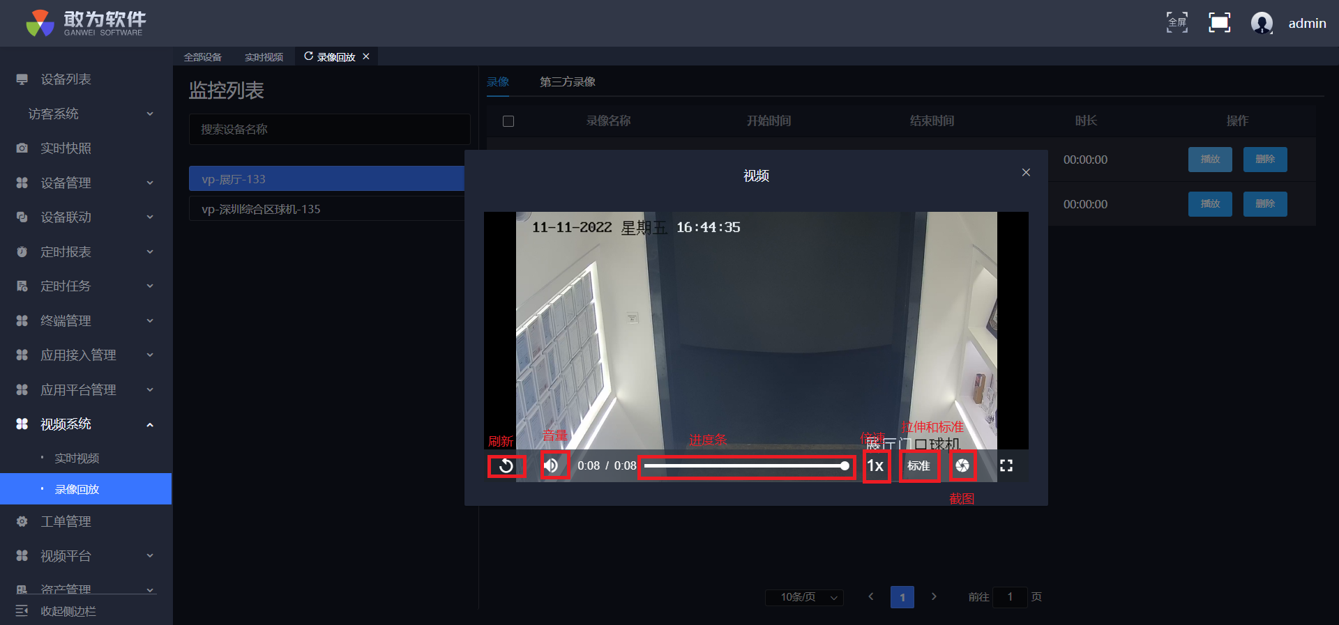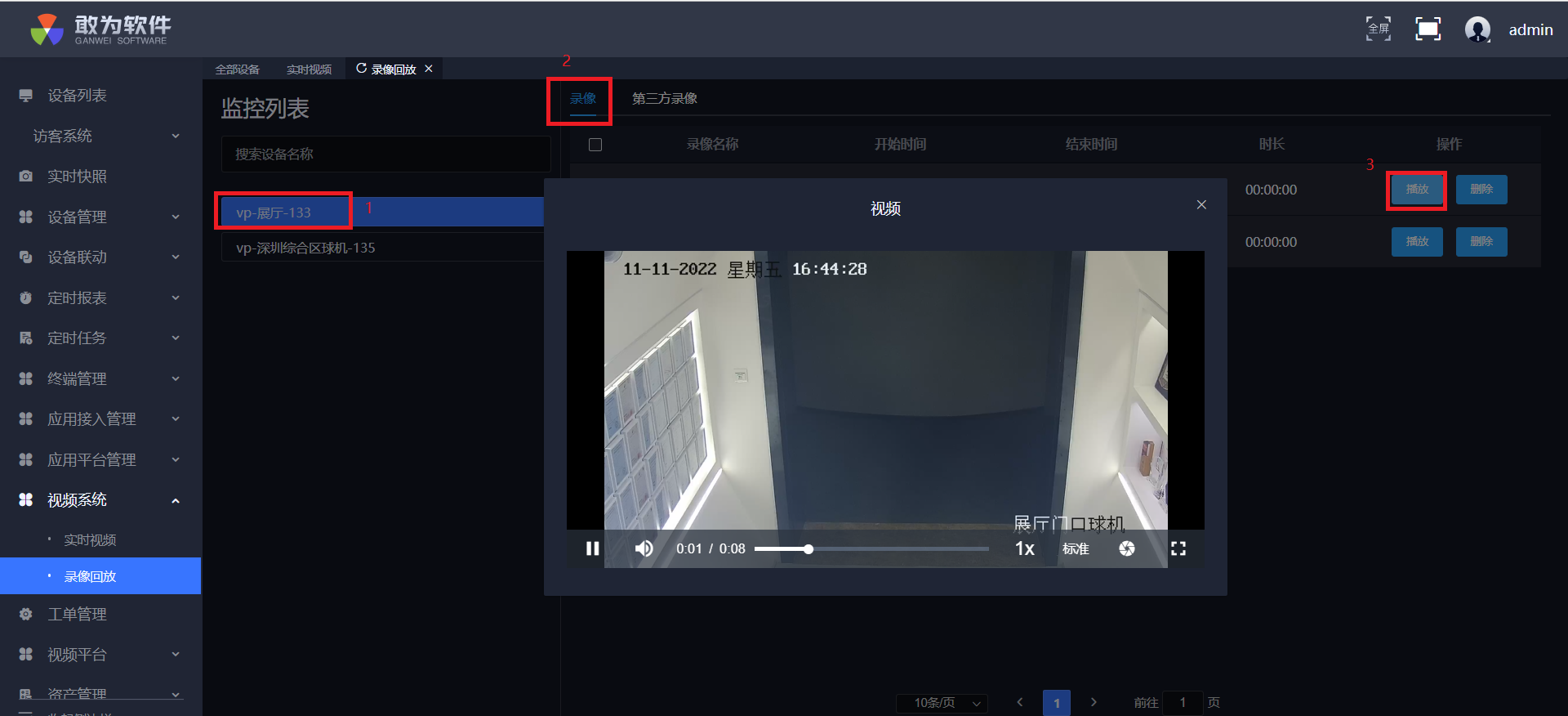 再次点击即可完成实时视频录制,可在录像回放页面查看。