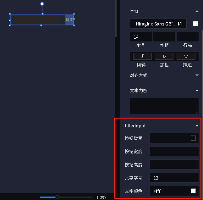 选中控件,在右侧属性外框中可以更改当前选中控件的文字样式和文本框中显示的文字内容等。