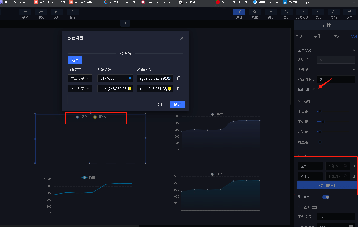 标题设置完成后,单击"图例"下拉按钮,然后单击"新增图例"按钮,然后设置图例名、值表达式并保存即可,如上图右侧所示。