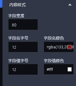 在属性数据栏中,存在内容配置,可以设置扇形图表的环半径和鼠标滑入扇形中显示的文字样式等,其配置内容如下所示:
