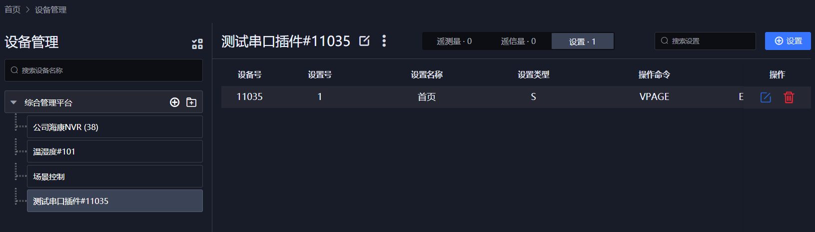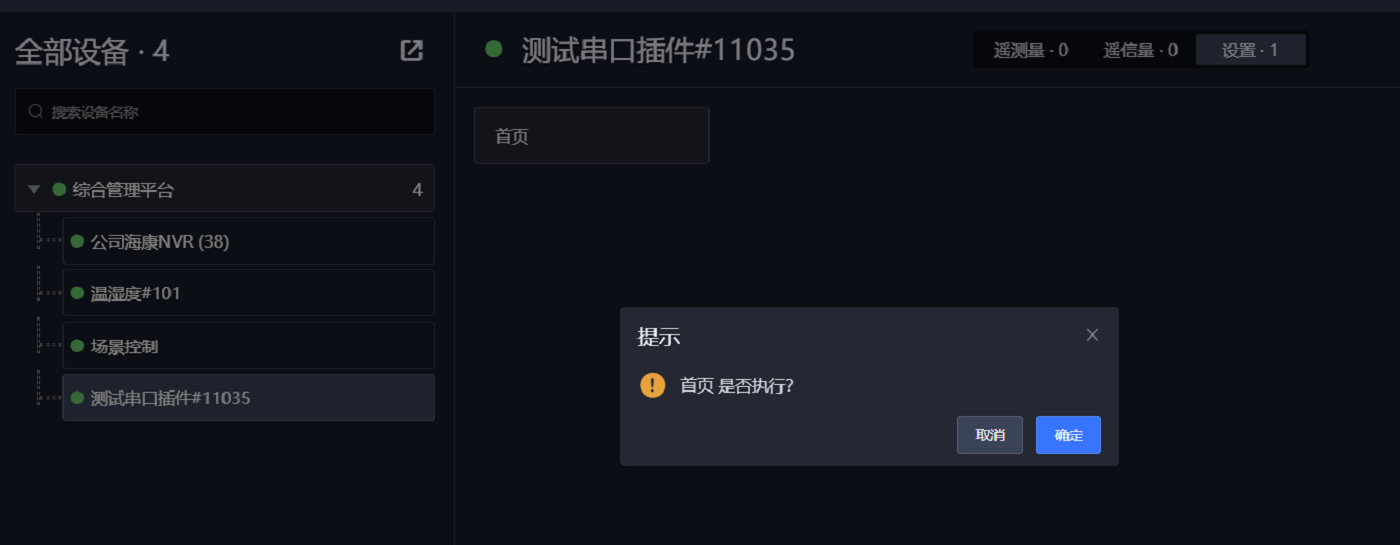 打开设备页面,在设置项下就出现如需设置指令。左键点击它们,将会触发协议插件的 SetParm() 方法向底层设备发送指令(如图所示)。