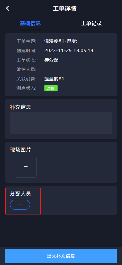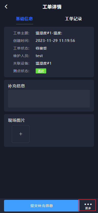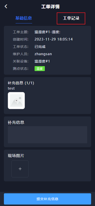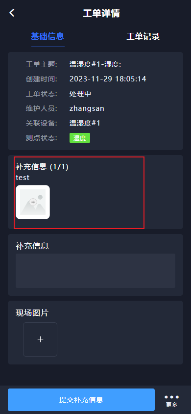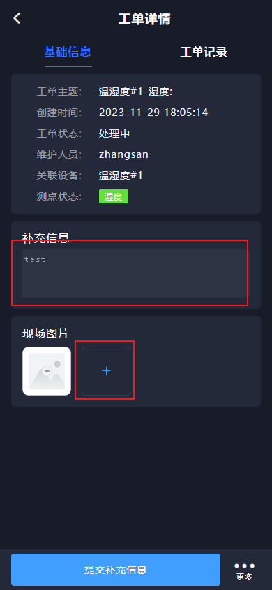 在详情列表中填写补充信息(必填),可以提交现场图片