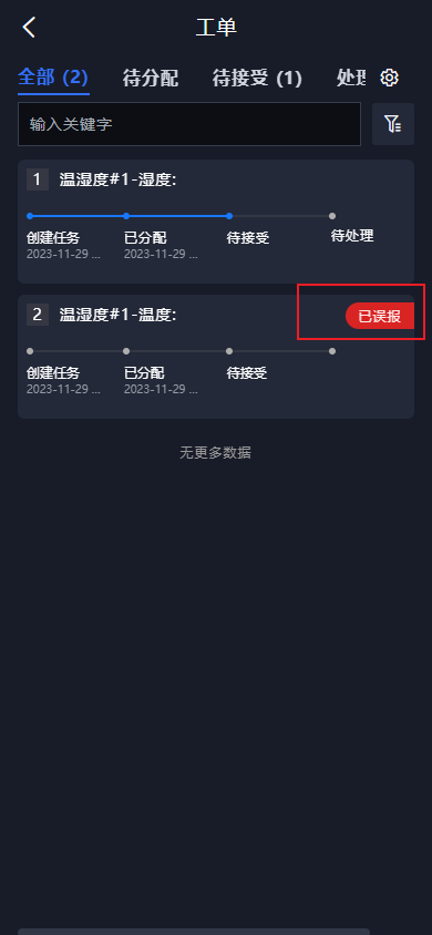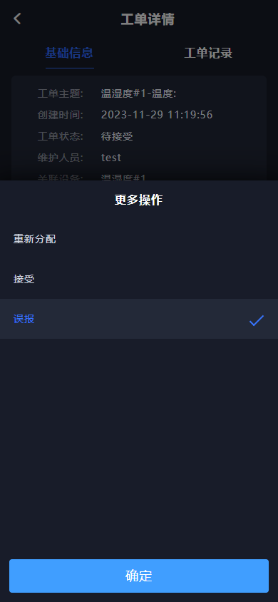 点击右下角更多按钮,选择误报按钮,误报原因弹窗中填写内容并点击确定按钮
