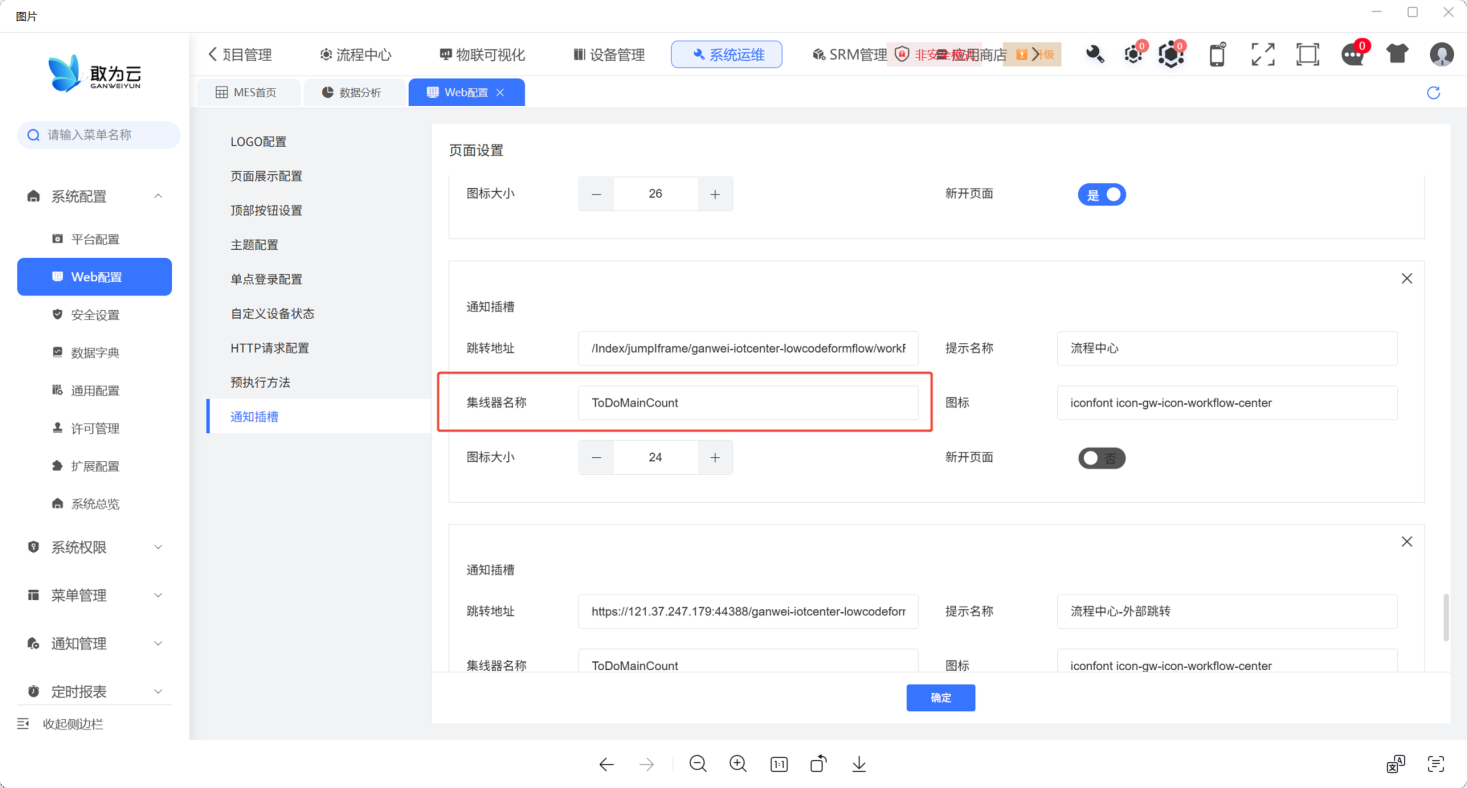 前端配置页面如下: