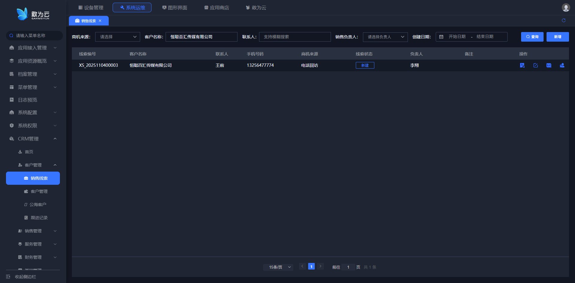 - 登录系统,进入 「销售线索」 页面;