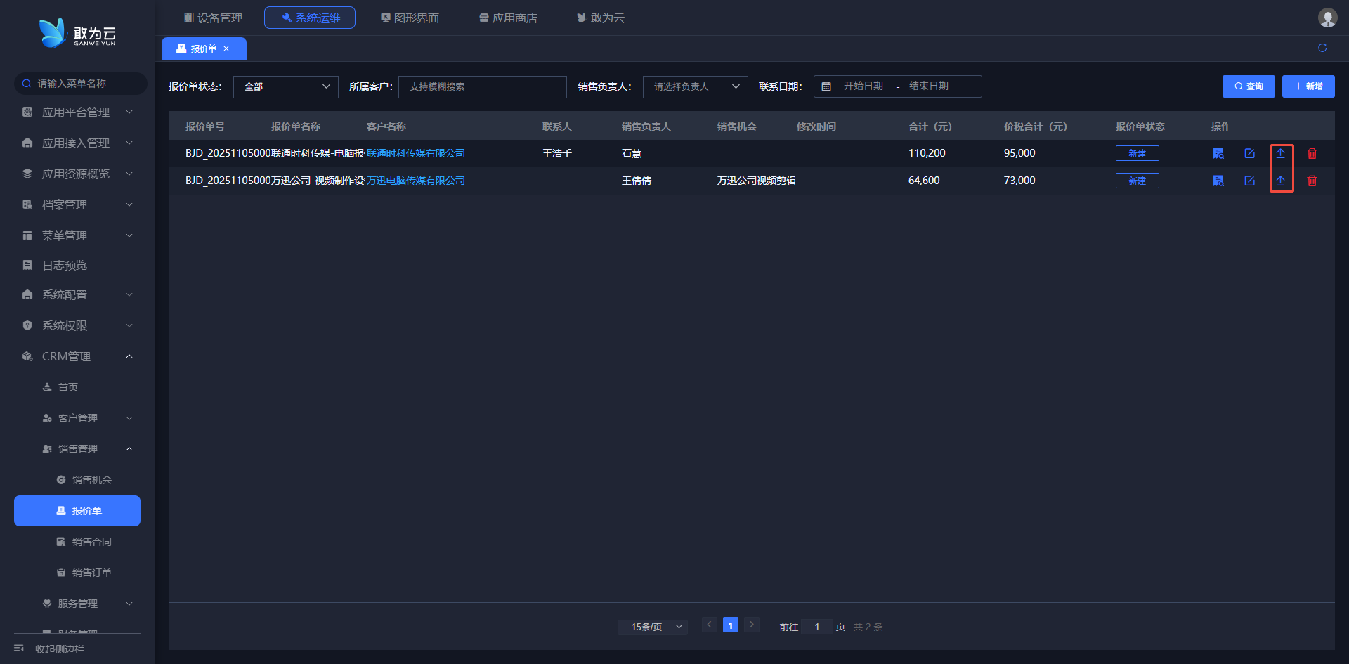 - 登录系统,进入 「客户管理」 页面;