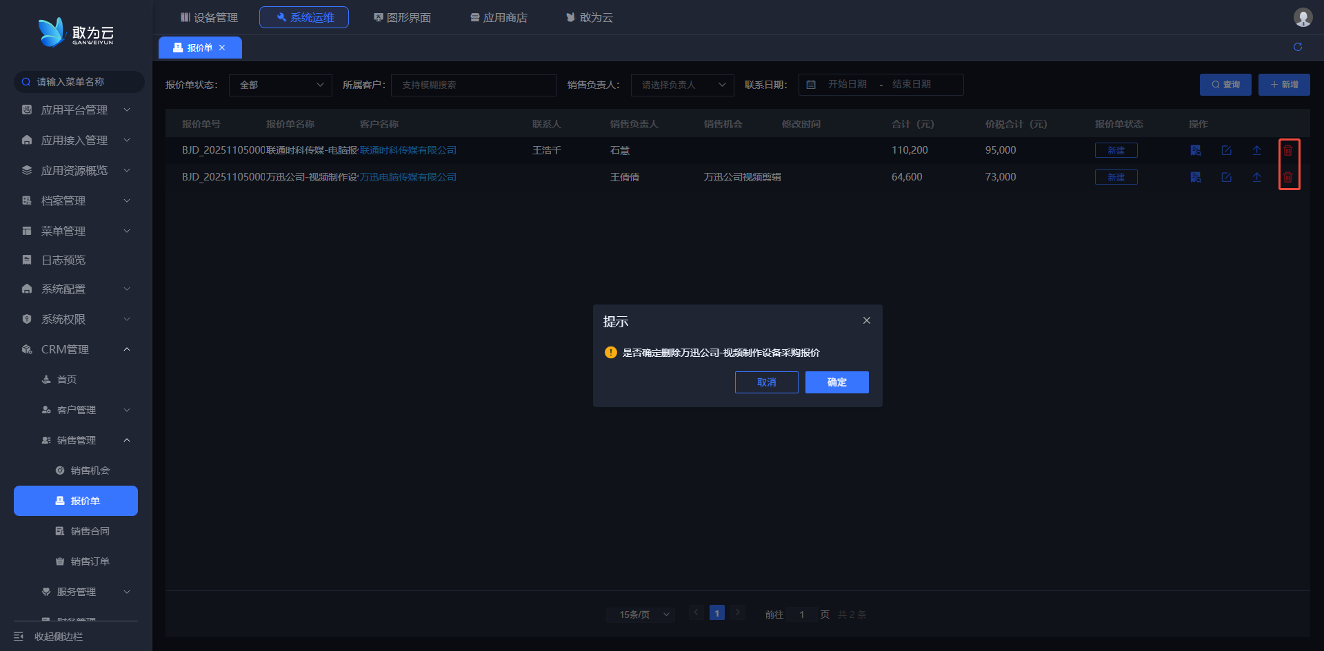 - 系统会弹出确认提示,请仔细核对订单信息以防误删;
