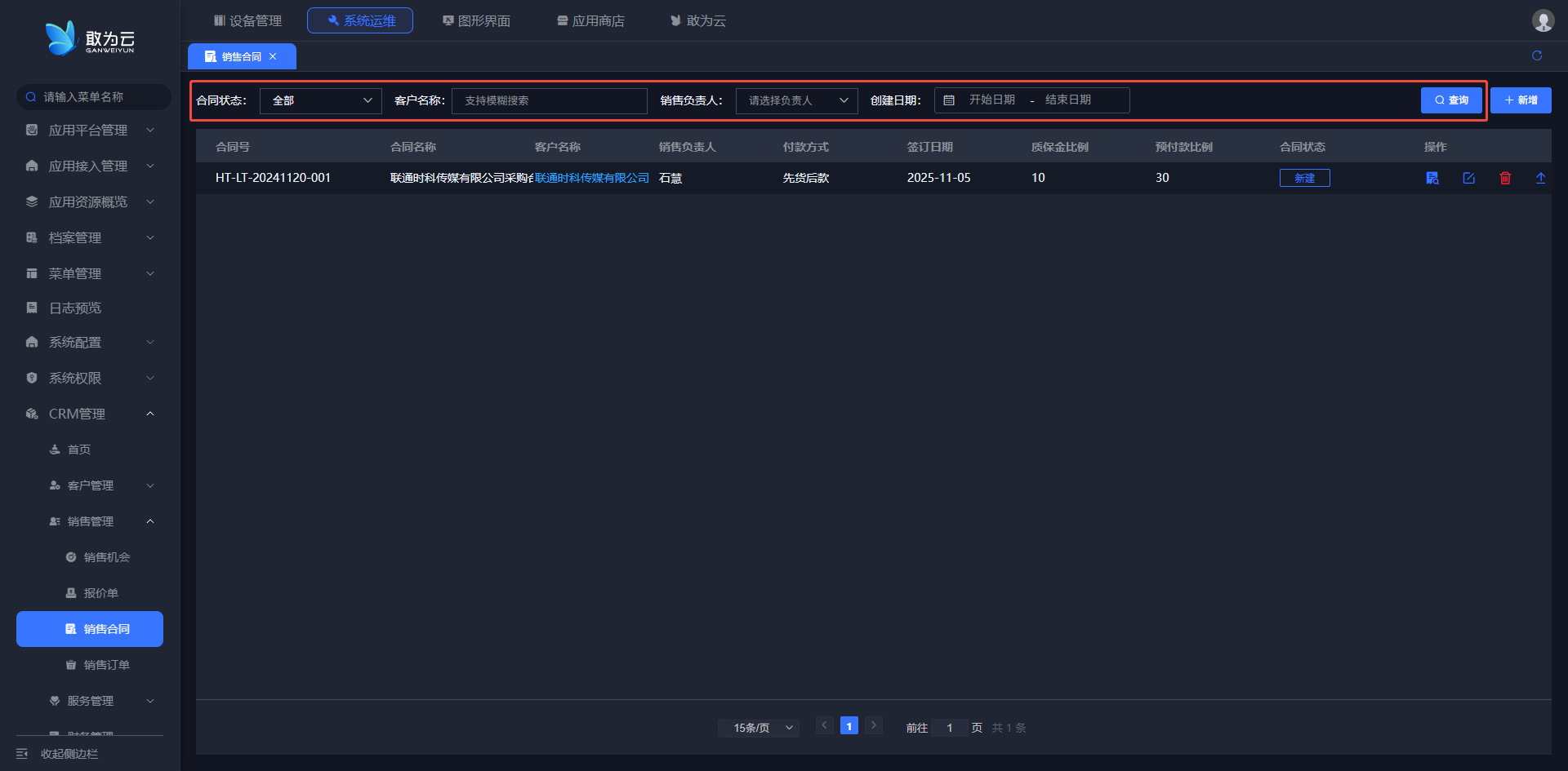 - 设置查询条件后,系统将实时筛选并列表显示符合条件的合同记录;