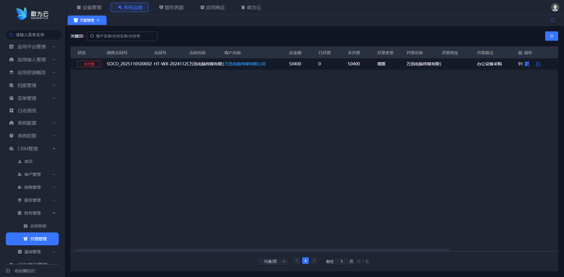 - 登录系统,进入 「开票管理」 查询页面;