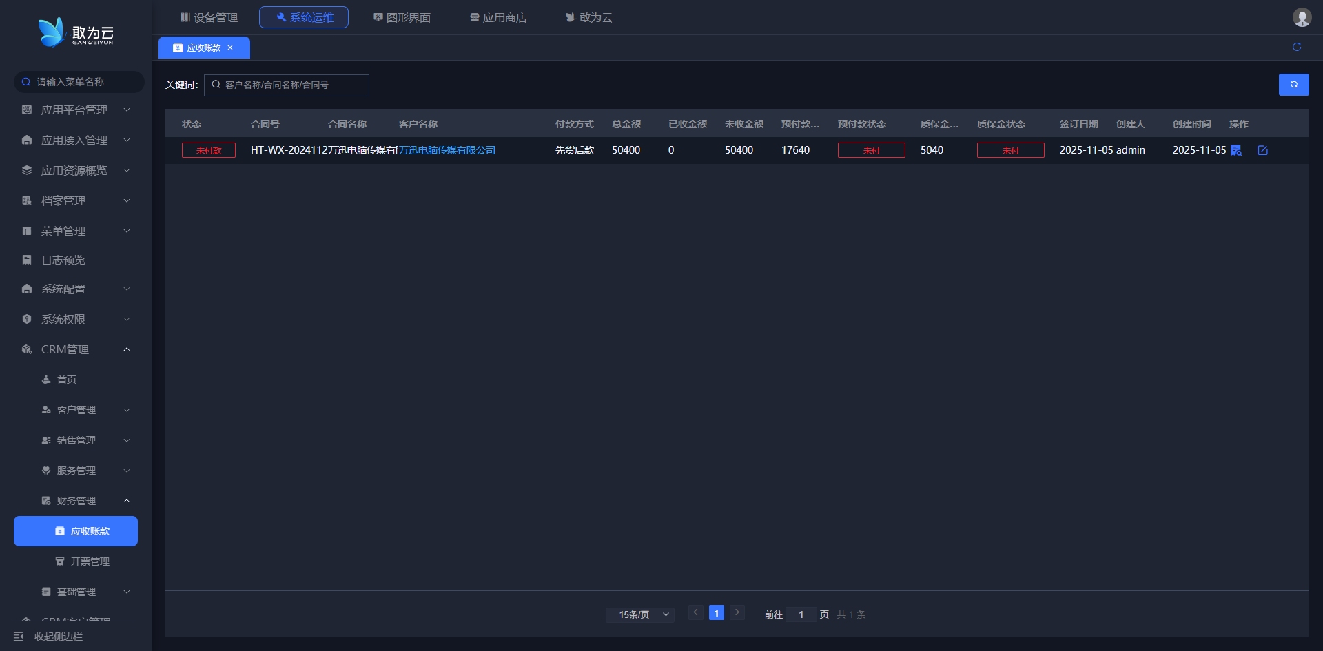 客户名称或合同号进行模糊搜索。