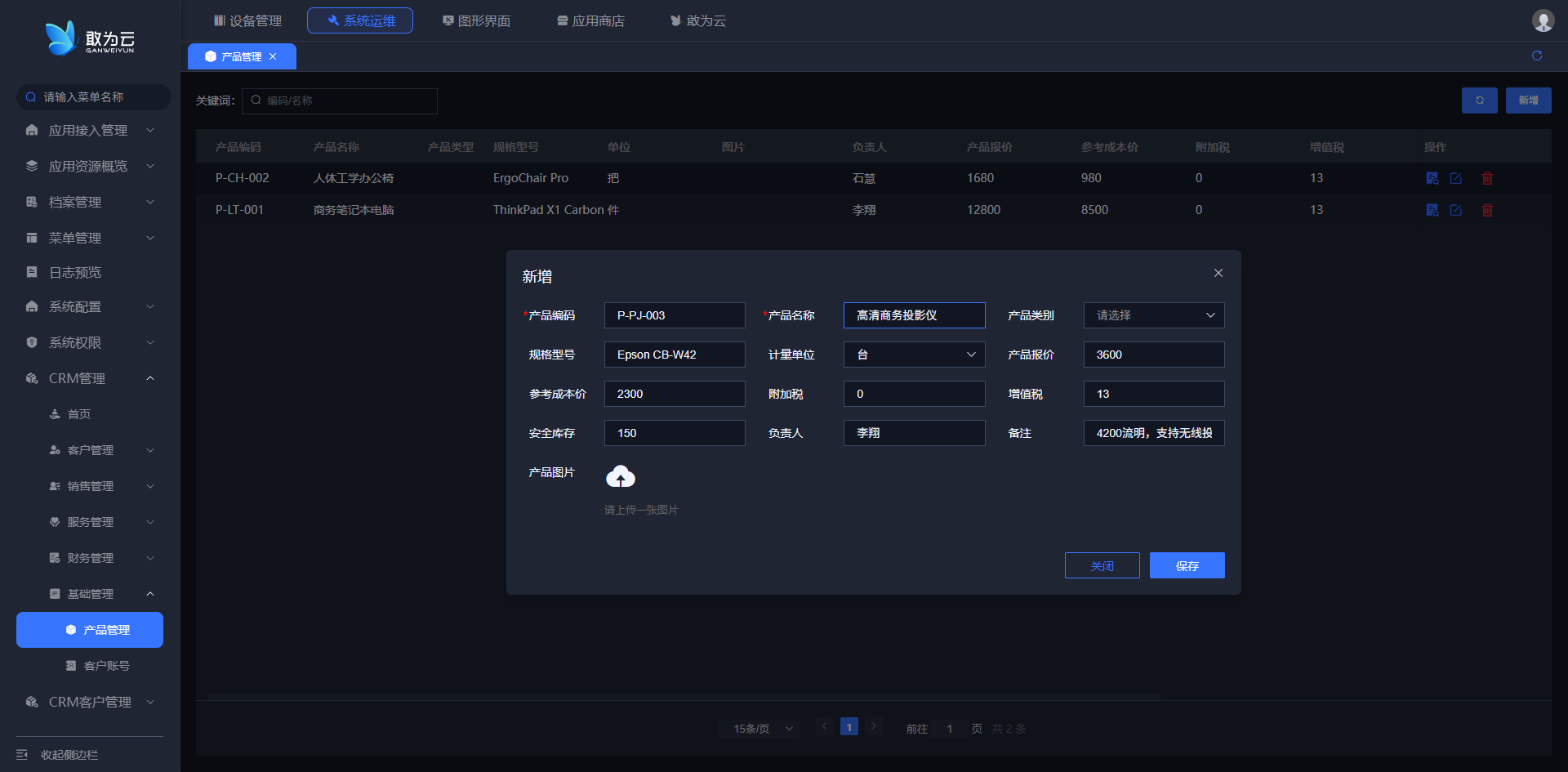 - 产品编码 & 产品名称:输入产品的唯一编码及标准名称