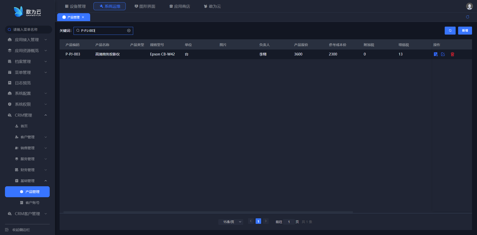 - 在 「产品管理」 列表中找到需要修改的产品记录;