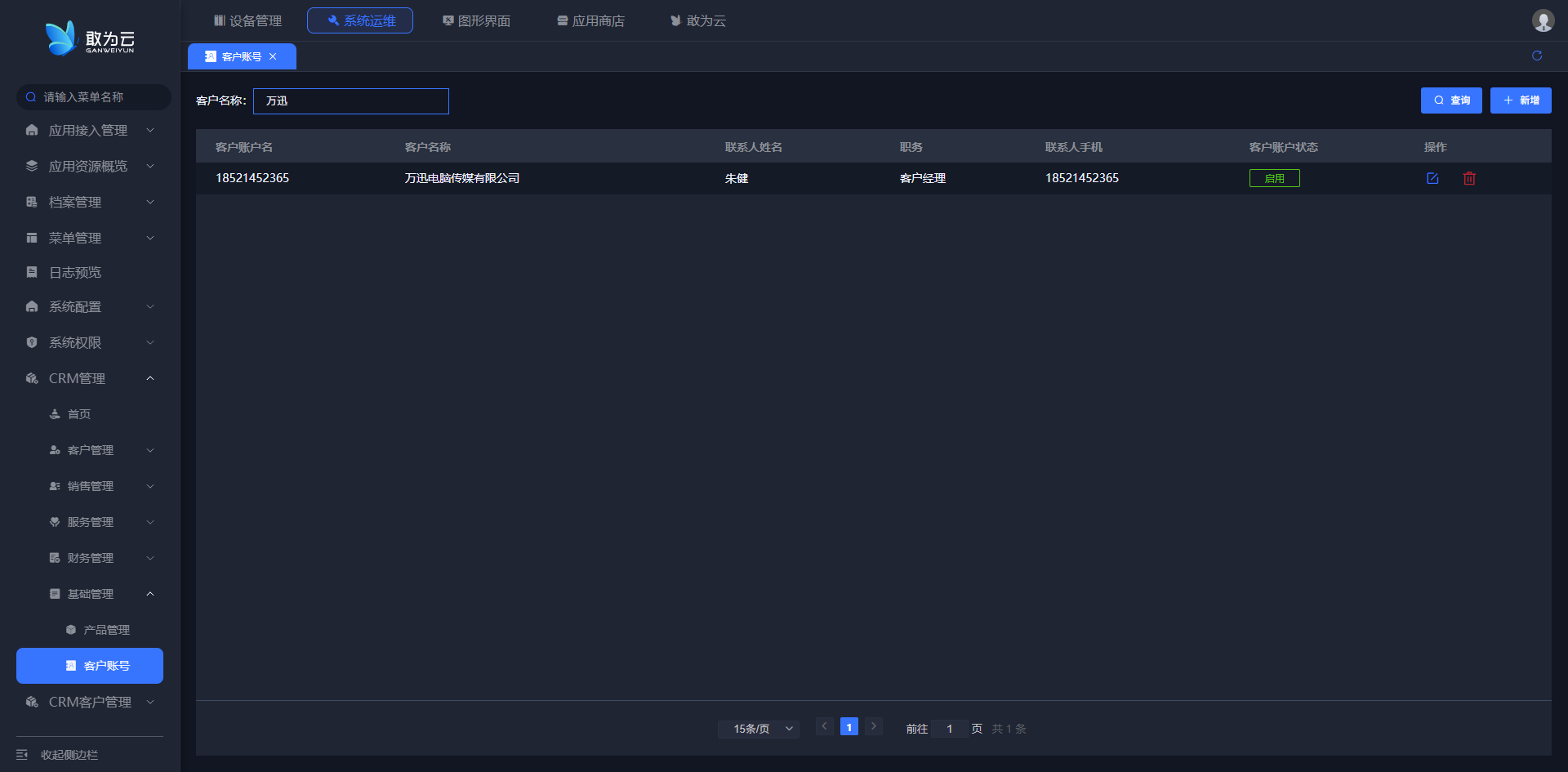 - 在 「客户账号」 管理页面,首先通过 「客户名称」 筛选特定客户;