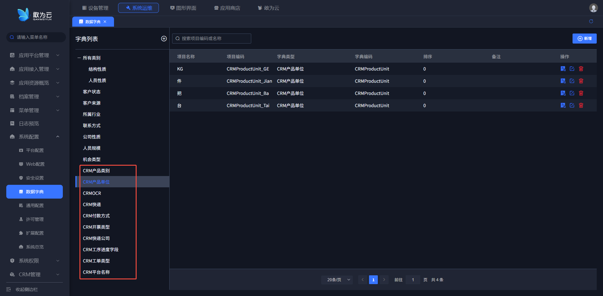 说明:平台基于CRM管理系统内置了多个数据字典,通过【系统配置-数据字段】模块实现高效管理: