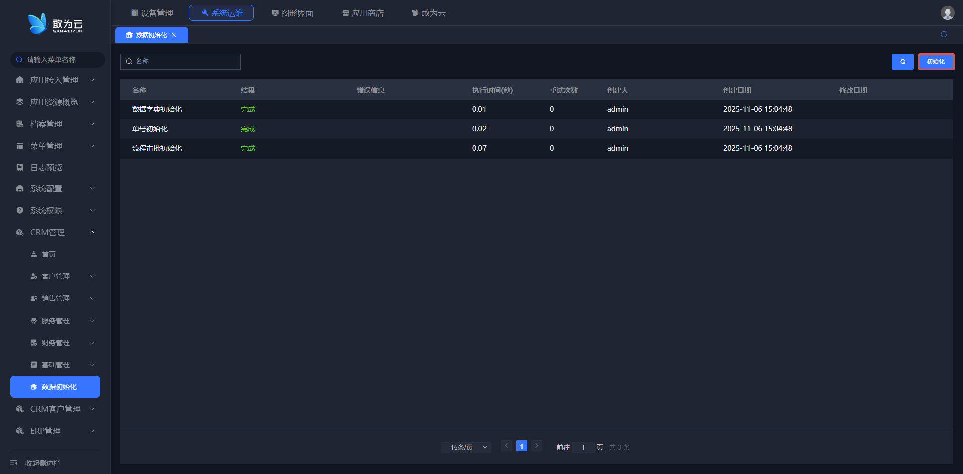 说明:点击初始化按钮一点初始化所有的流程及数据字典以及单号。