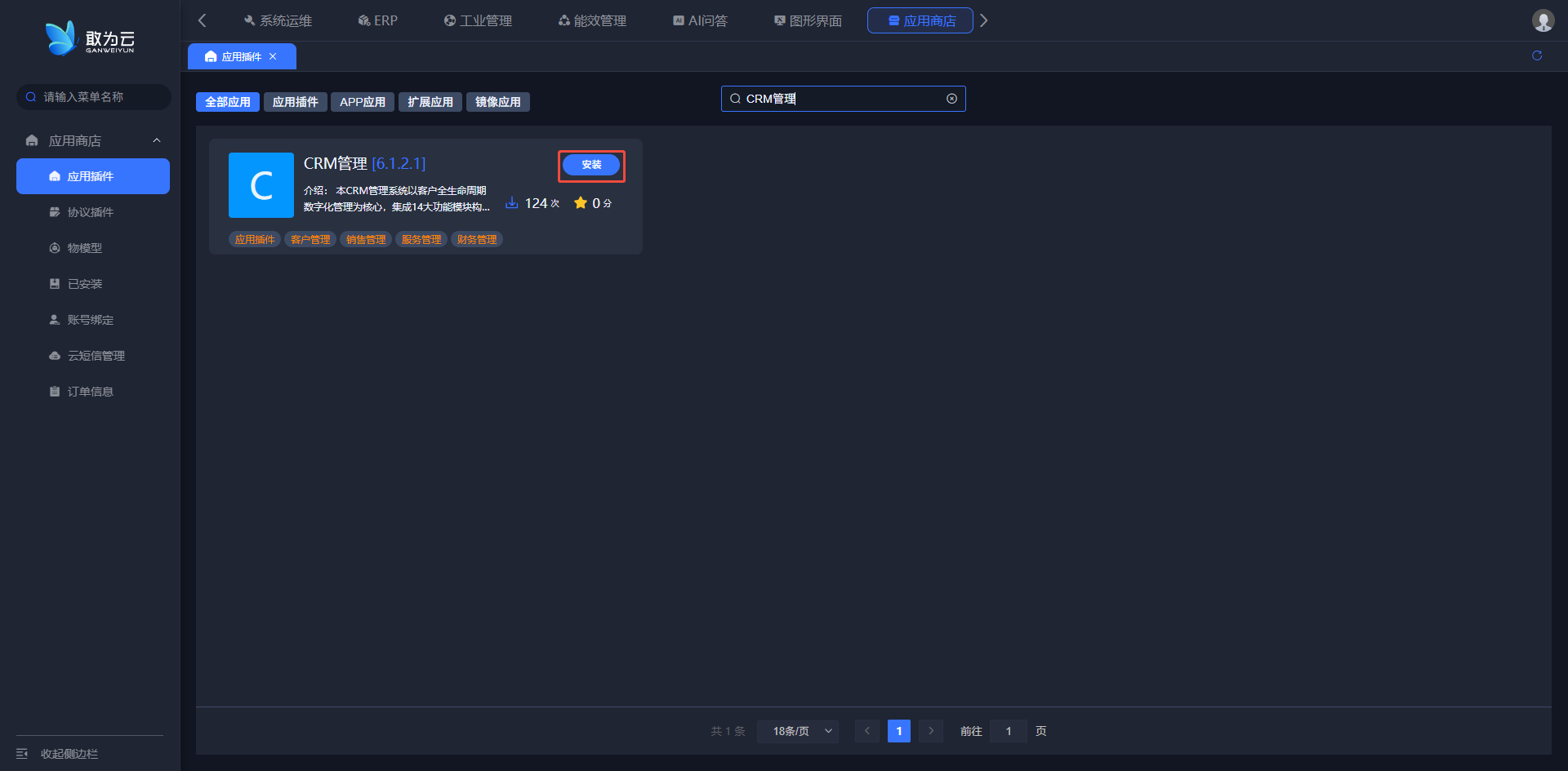 - 搜索CRM管理,点击安装;