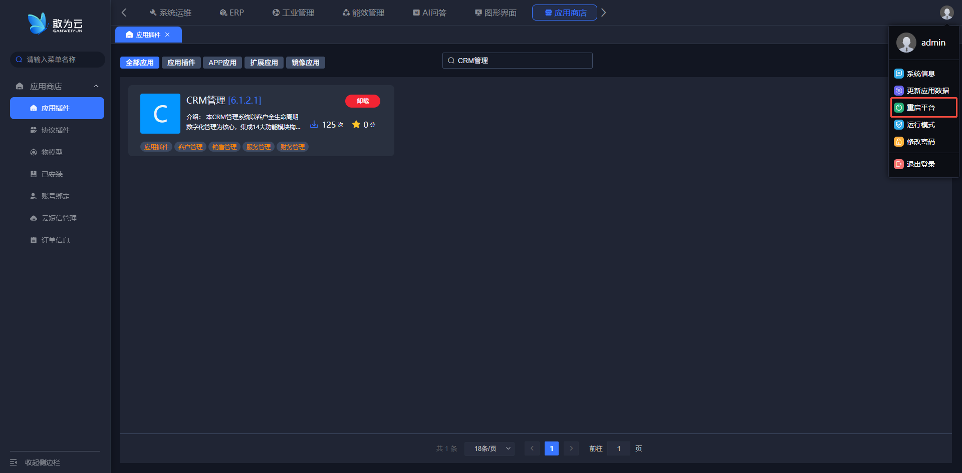 - 安装完成后,重启平台即可。