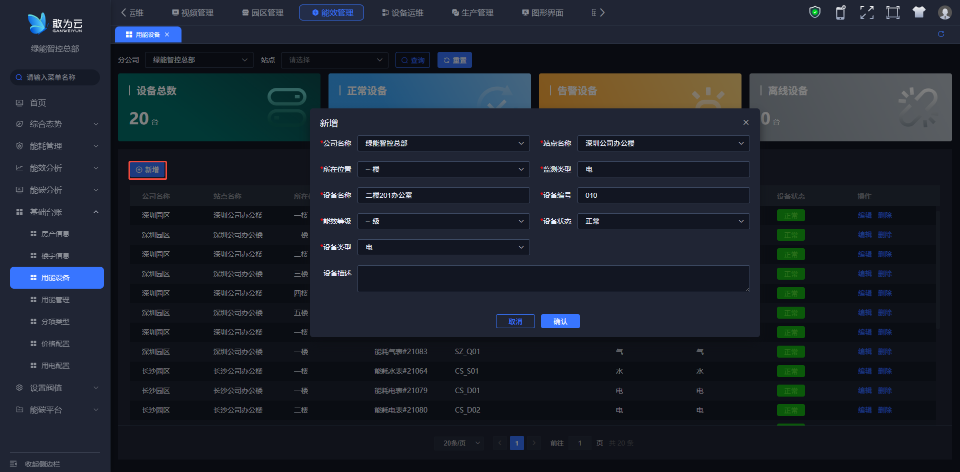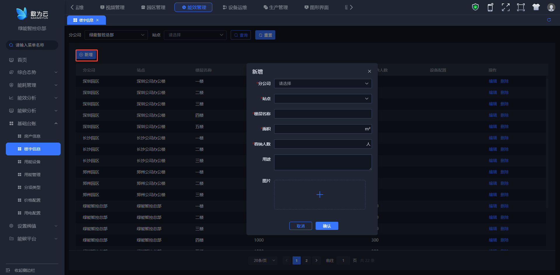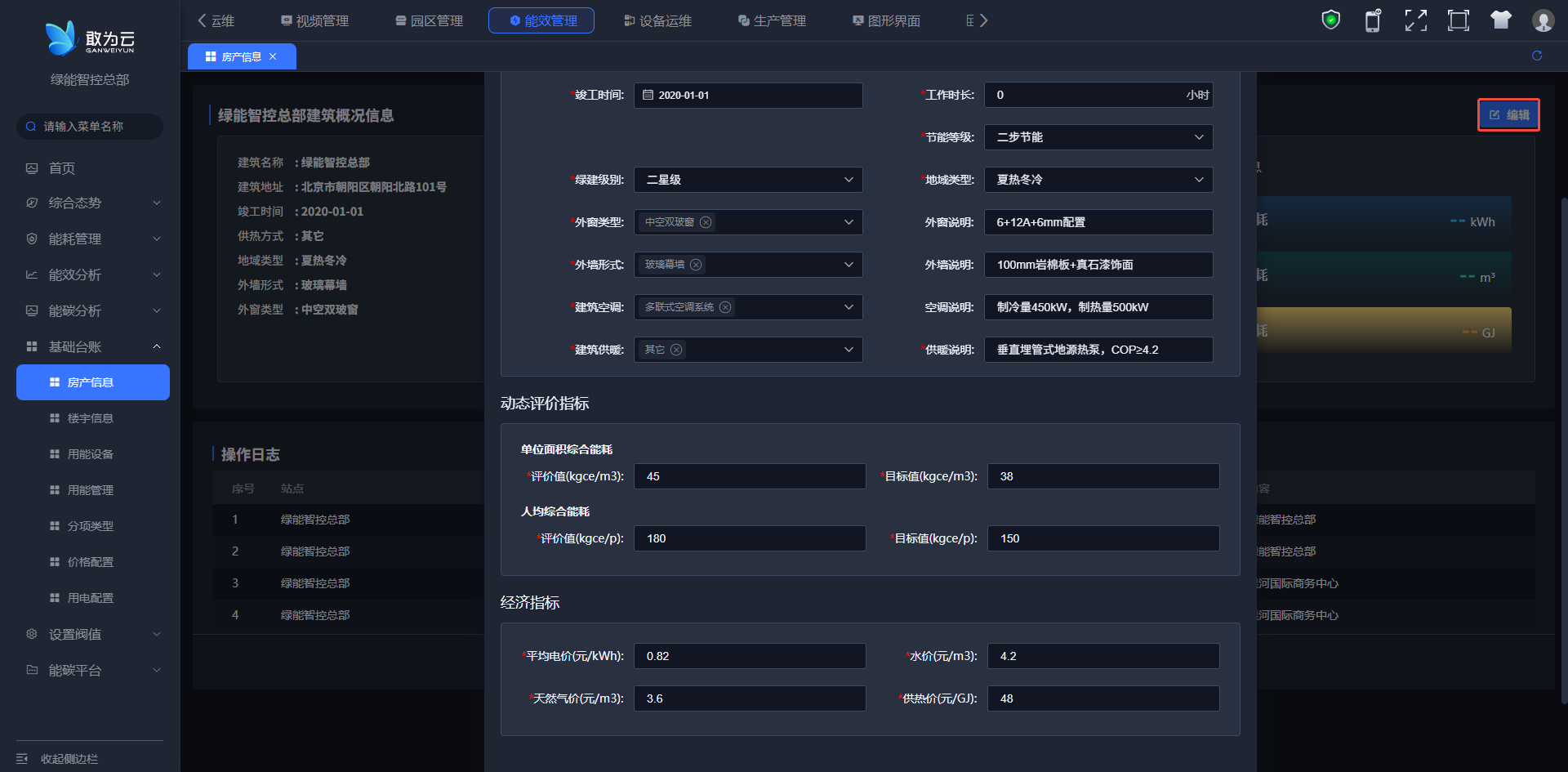 - 再配置基础台账中的房产信息、楼宇信息、用能设备等基础配置