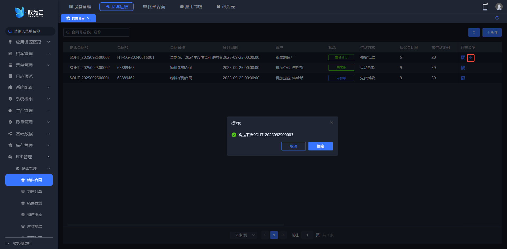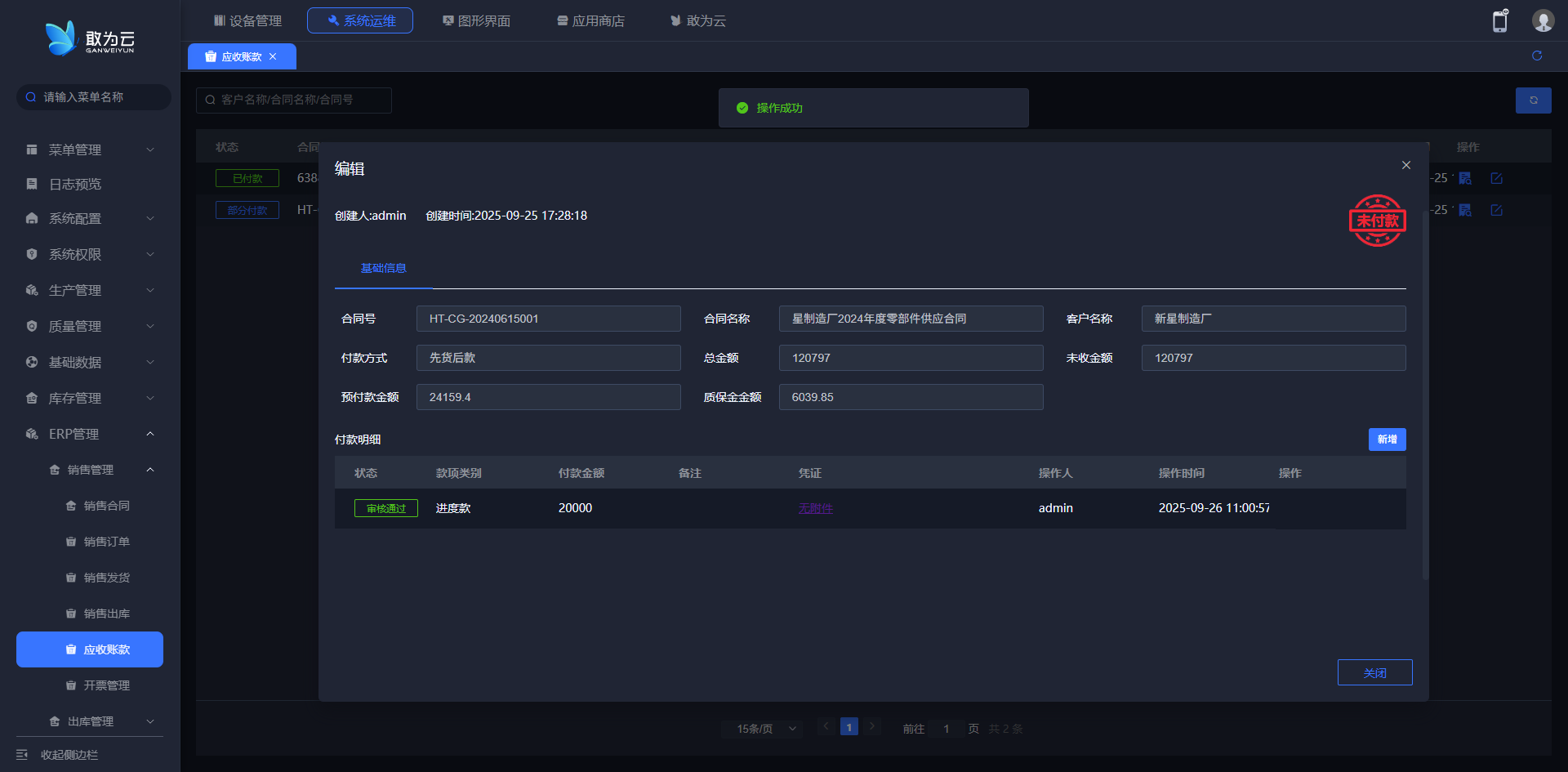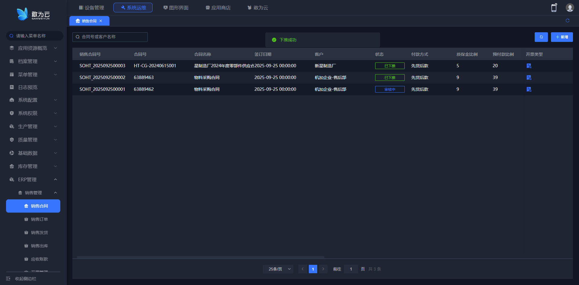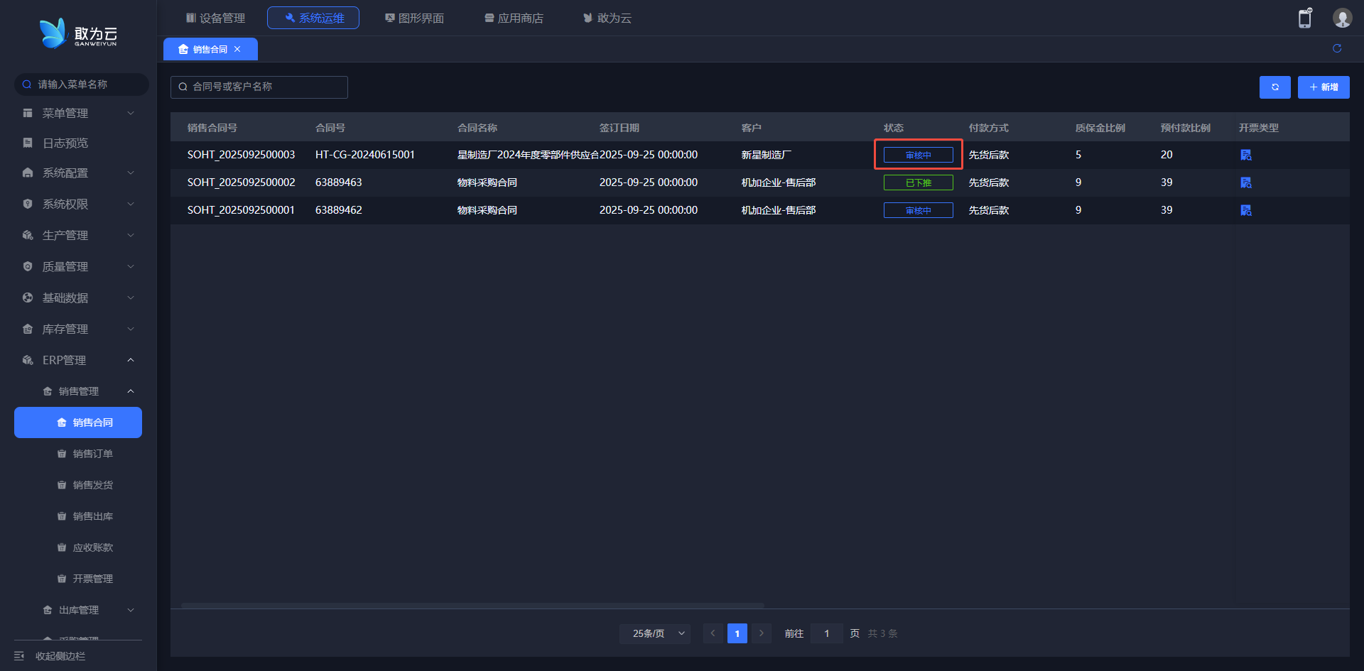 销售合同管理功能用于处理销售合同的创建、审批、变更及归档全流程,确保合同数据准确可追溯。