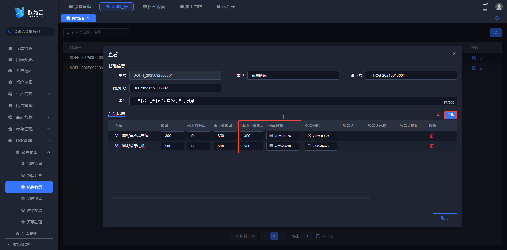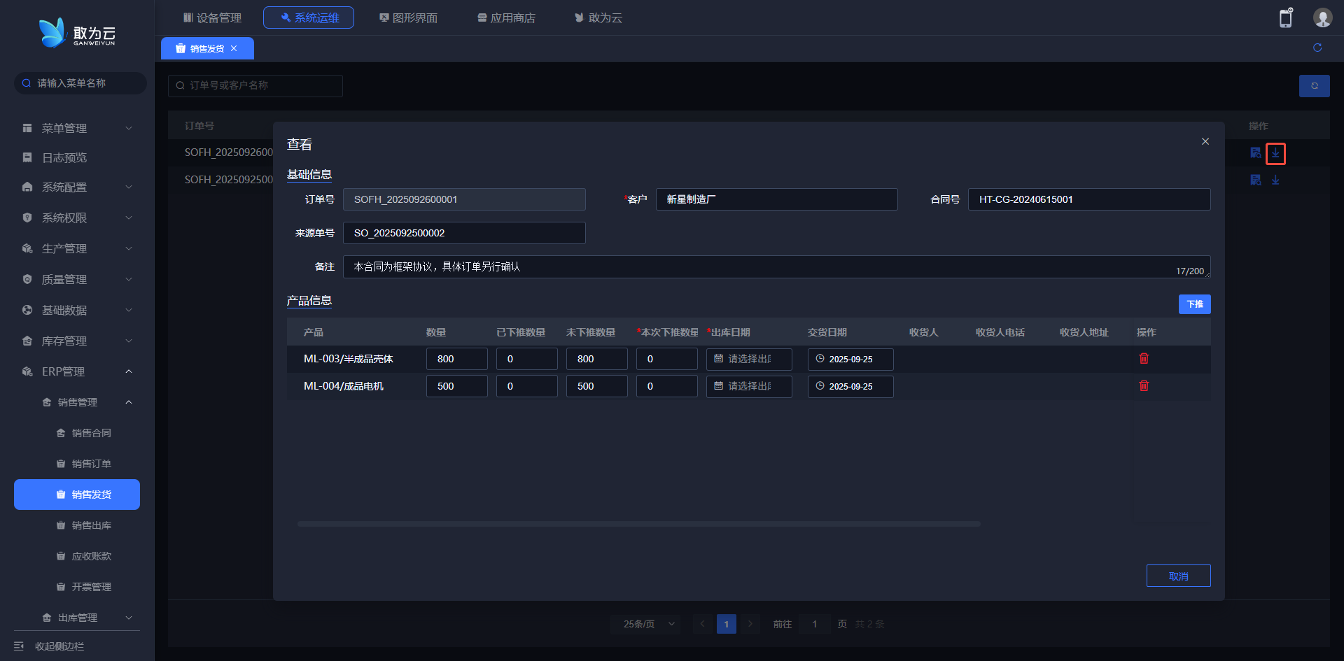 销售发货功能用于生成发货单、确认发货信息,确保货物准确发出。