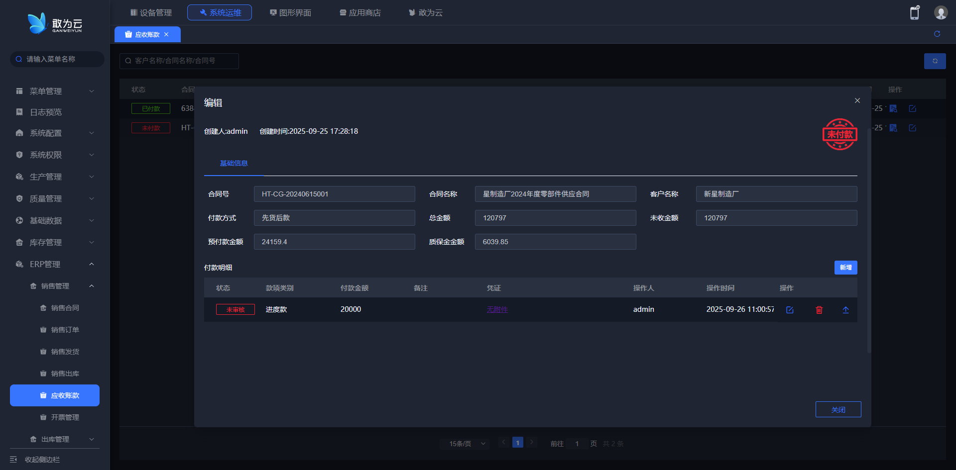 | 5 | 应收账款 | 账期管理、对账处理、逾期预警及收款核销跟踪 |