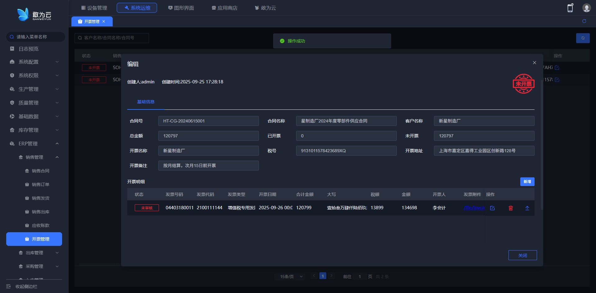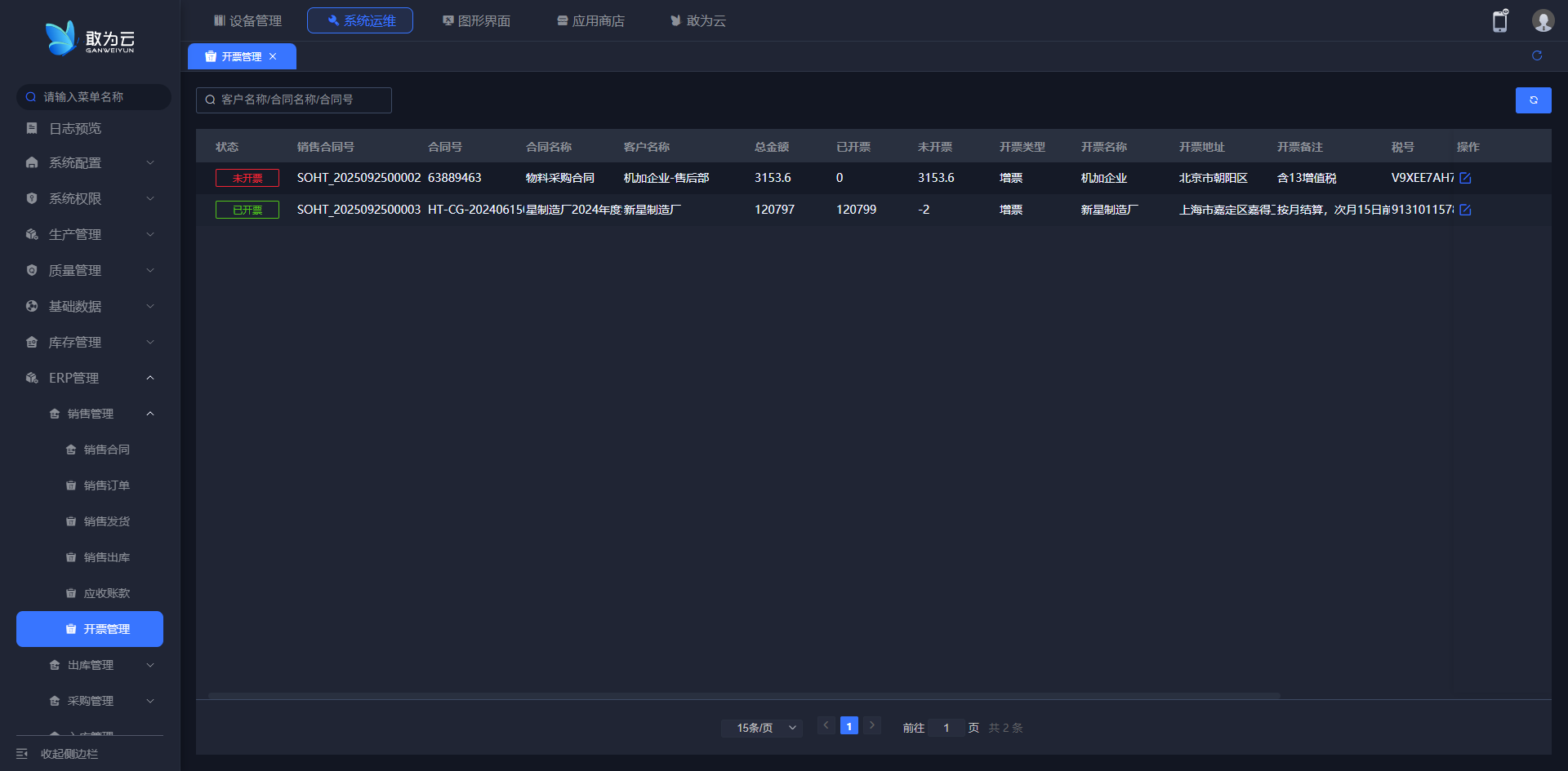 开票管理功能实现发票自动生成、税控对接,简化开票流程。