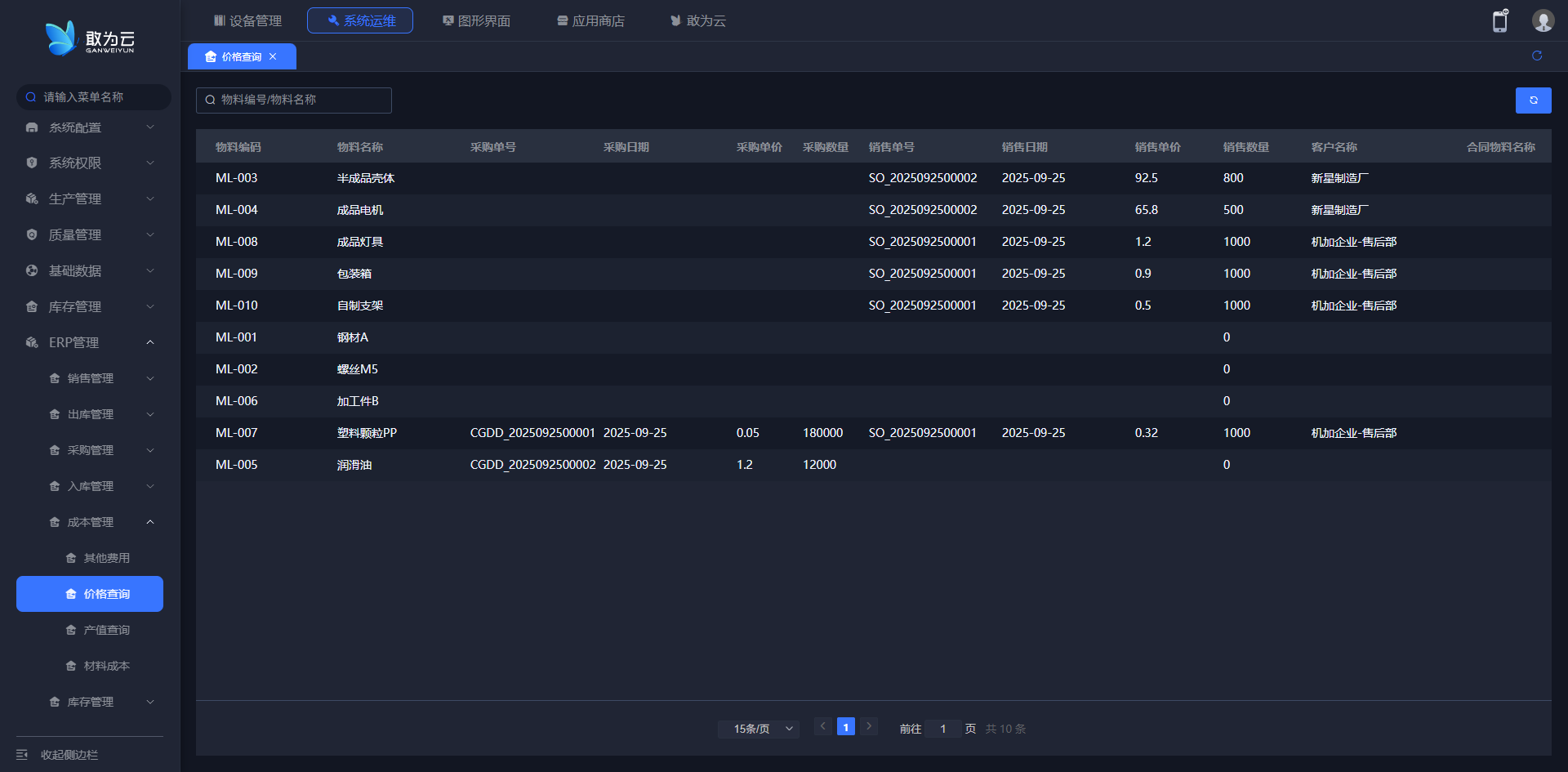价格查询功能提供实时物料采购价格及历史价格对比,辅助采购决策。