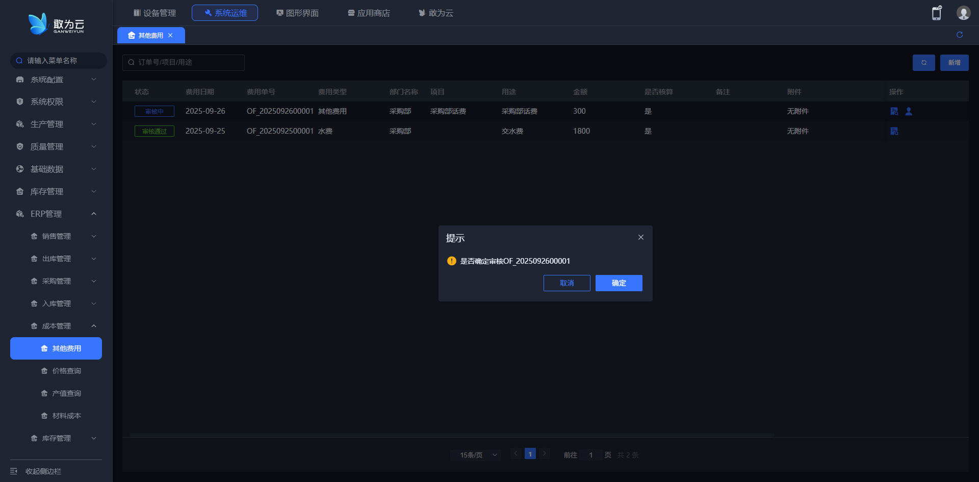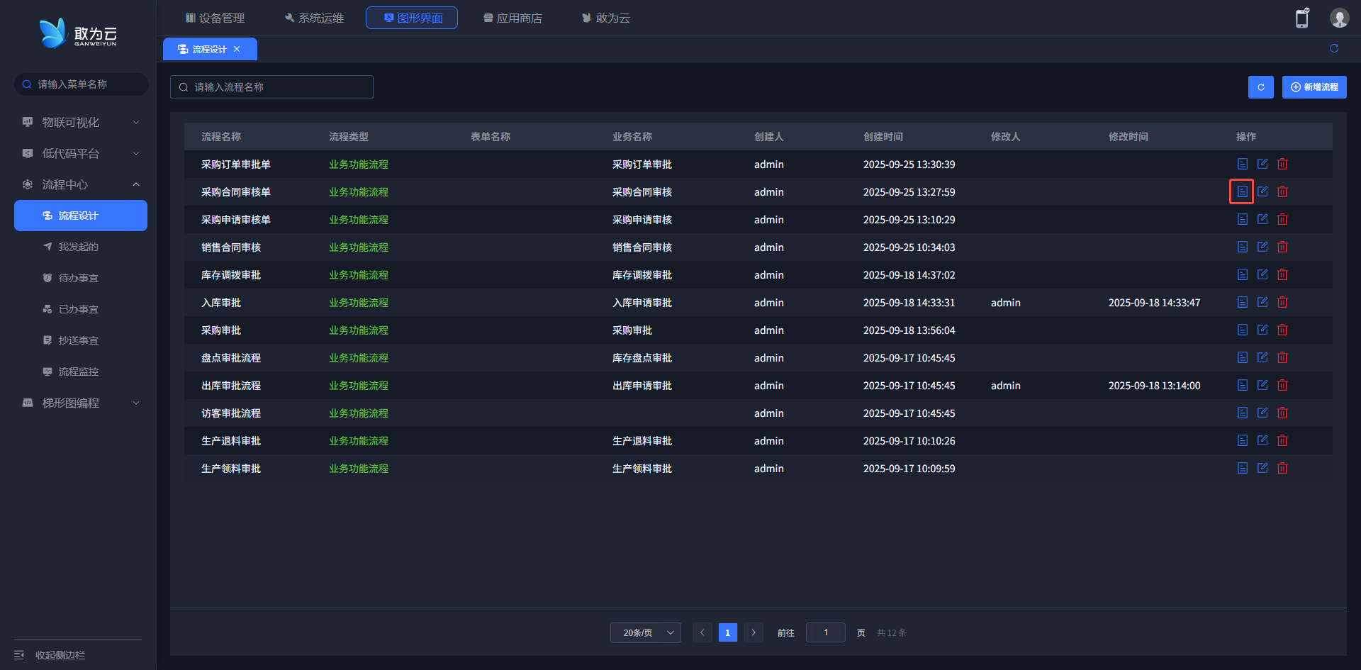 - 流程中心内置了生产管理所需的所有流程,当提交审批单后会自动触发审批流程;