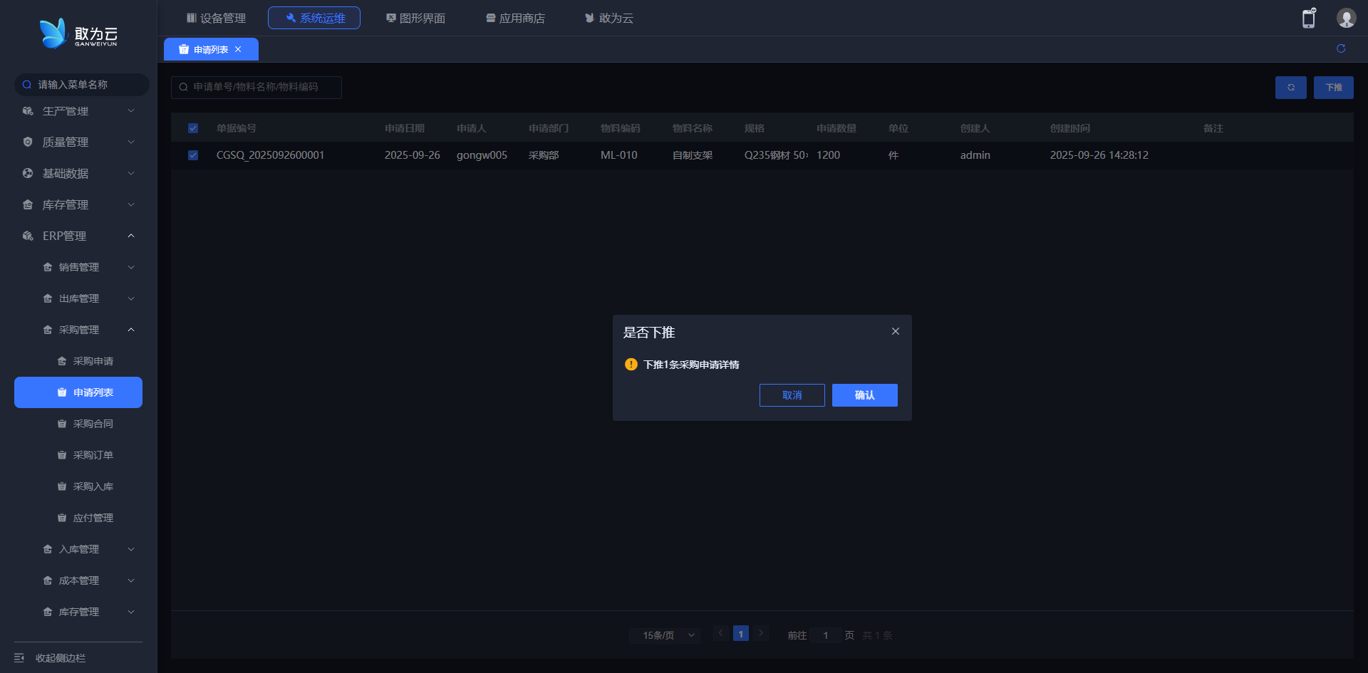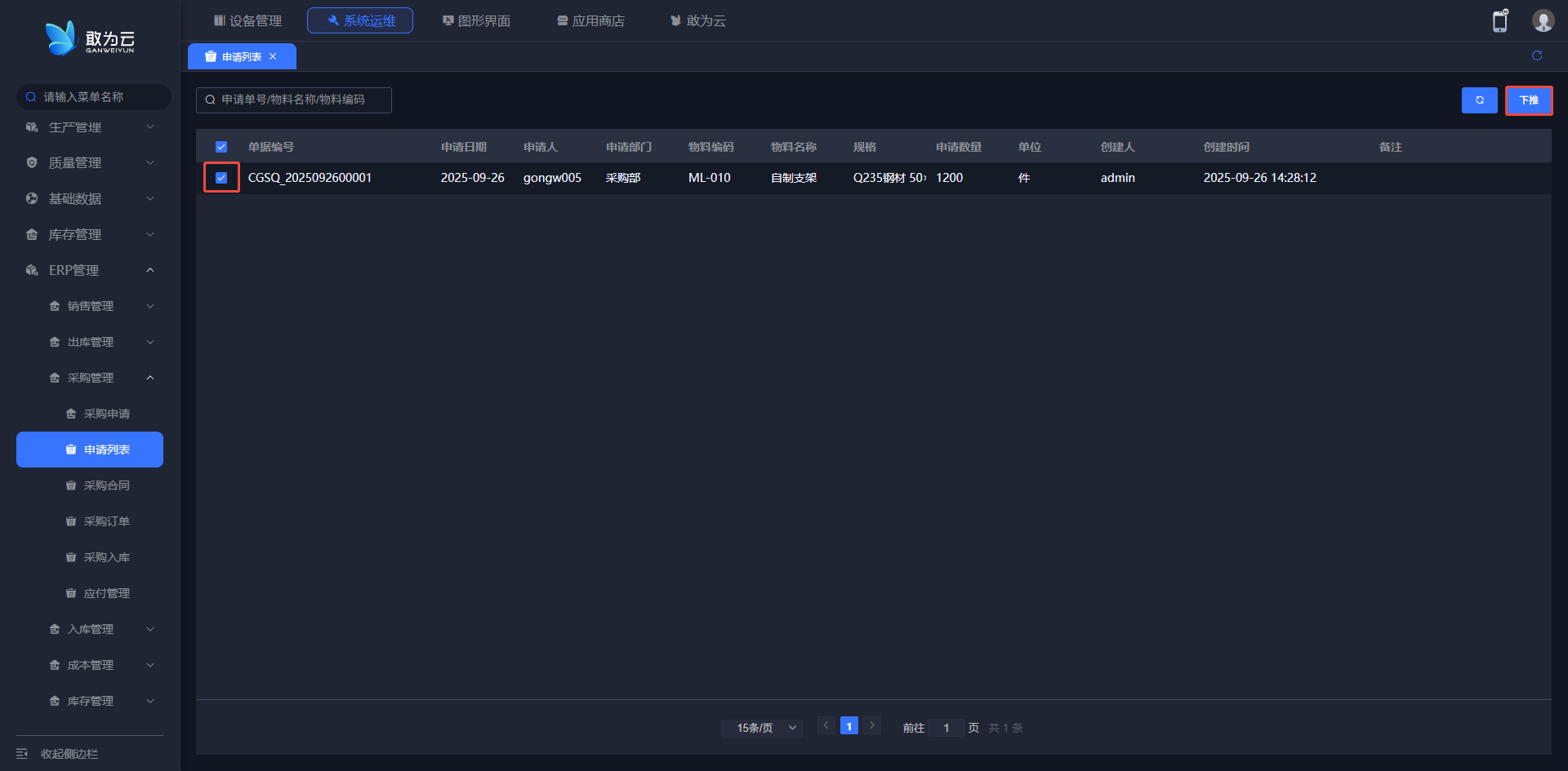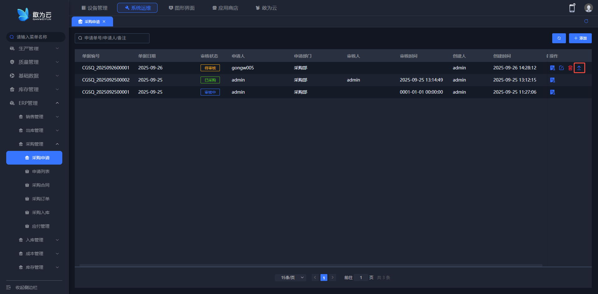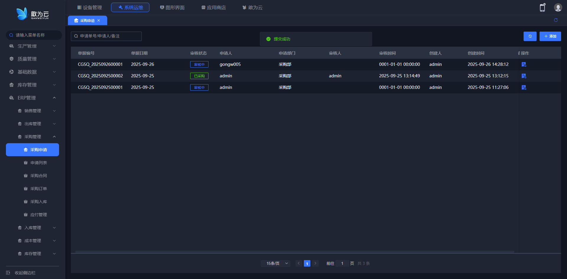 采购申请功能用于提交和管理采购需求,确保采购需求规范化。