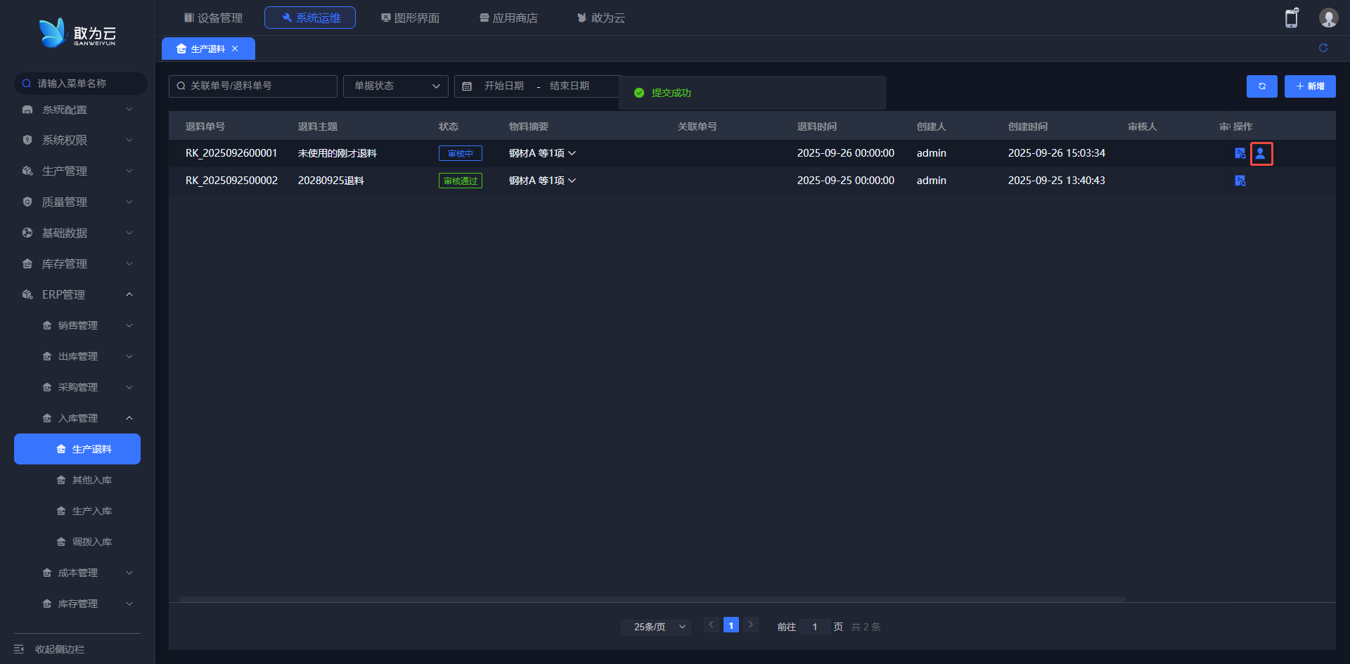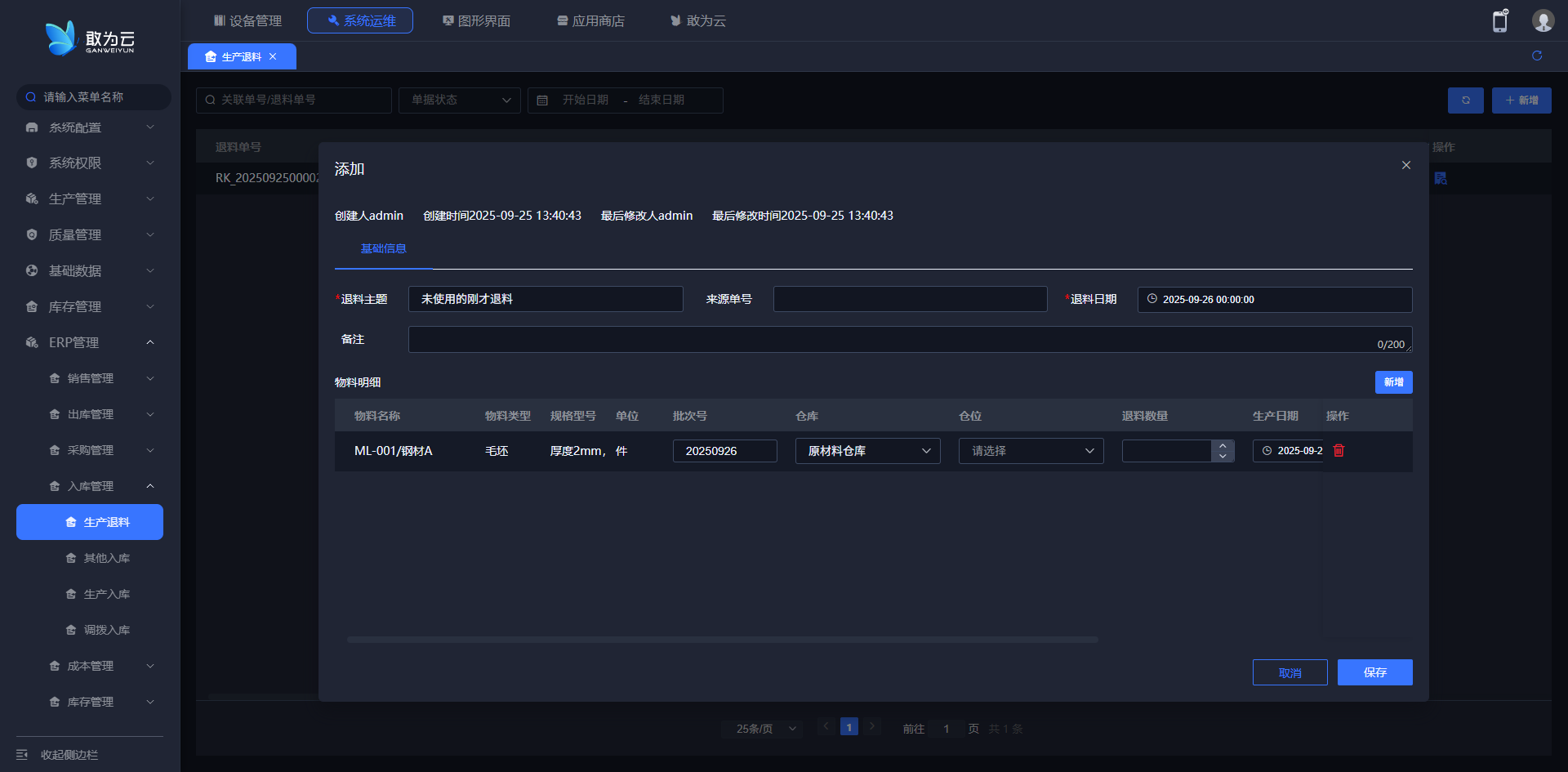 生产退料功能管理生产过程中多余材料退回仓库,减少浪费。