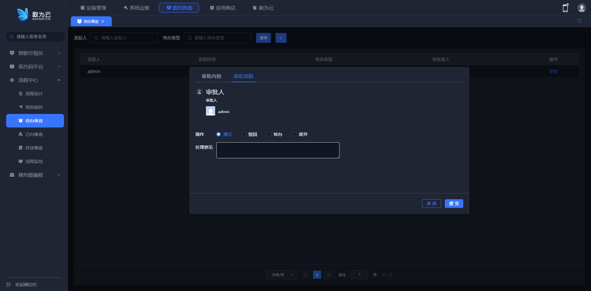 - 切换到对应的审批人账号,进入待办事宜可以对已经提交的审批单进行审批。