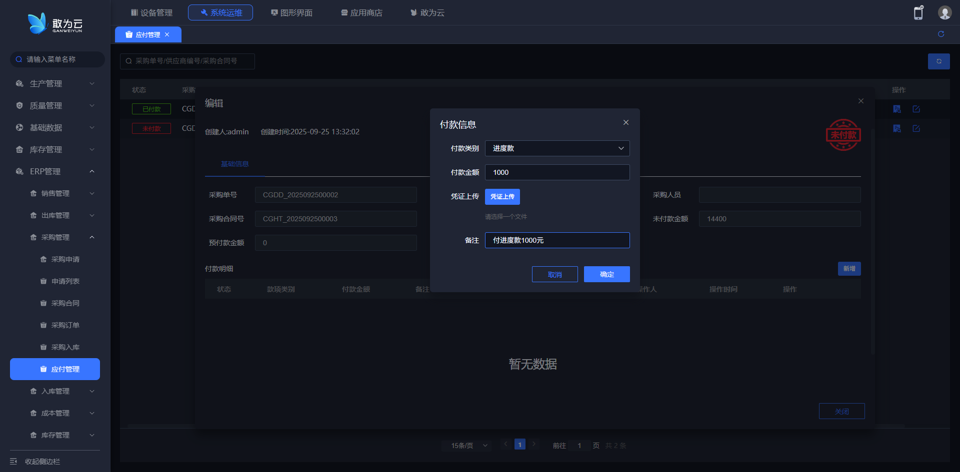 应付管理功能管理与供应商之间的应付账款,确保付款及时准确。