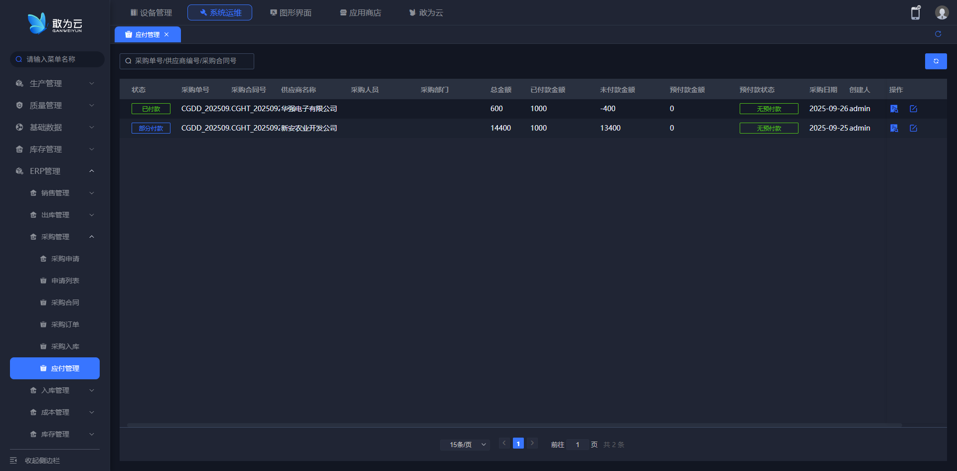 | 12 | 应付管理 | 管理与供应商之间的应付账款 |
