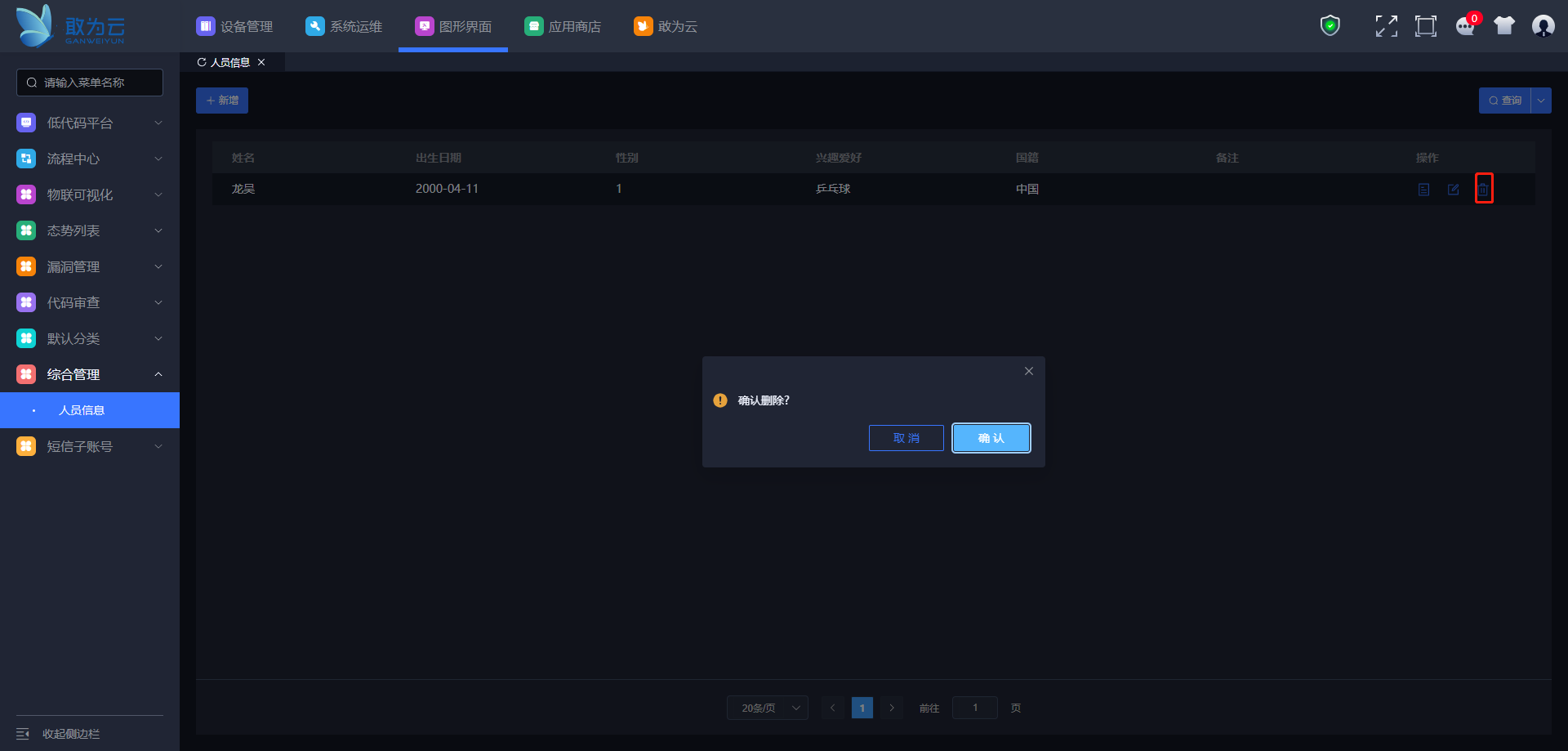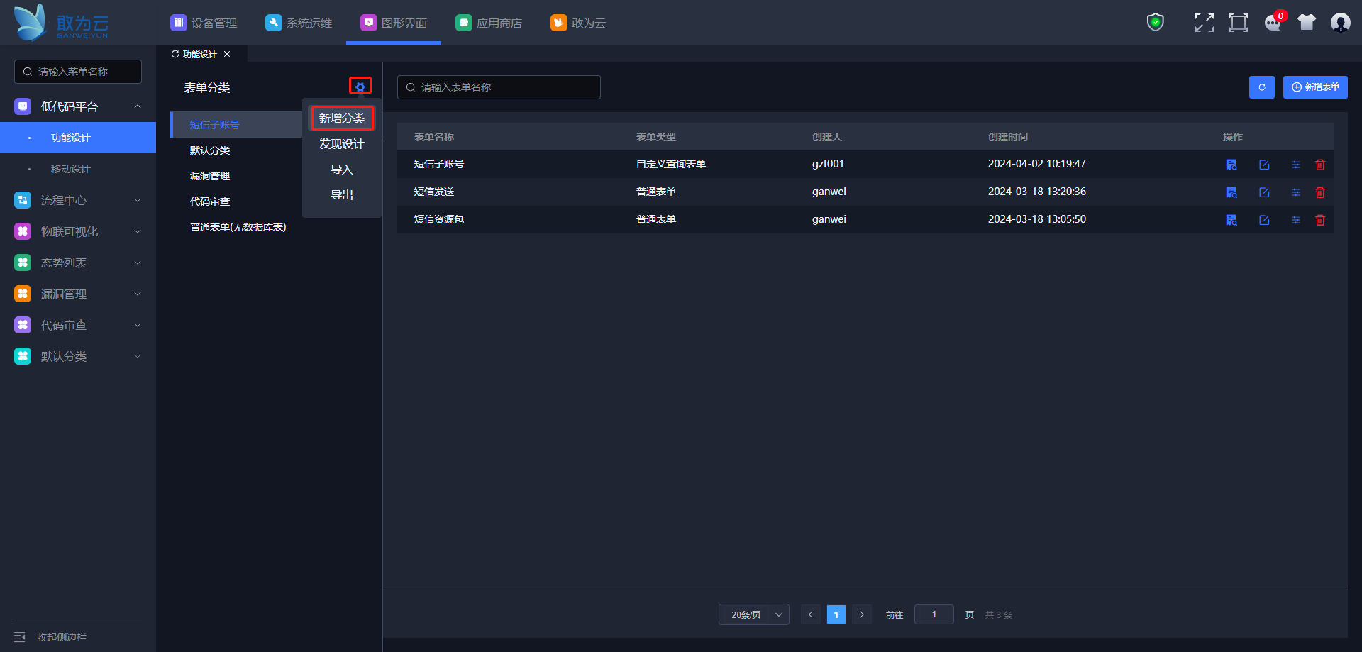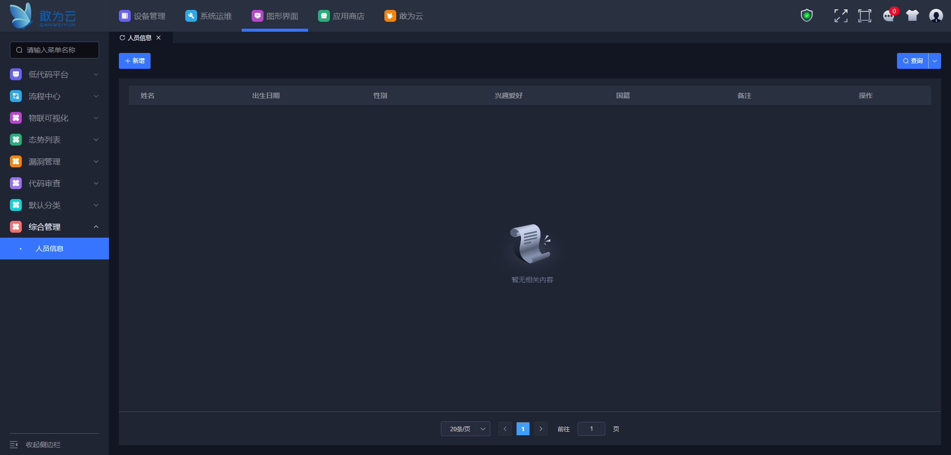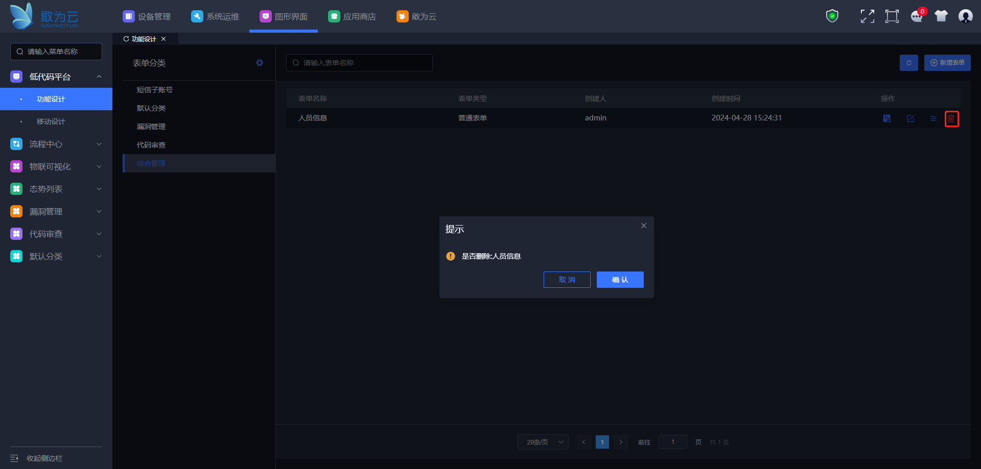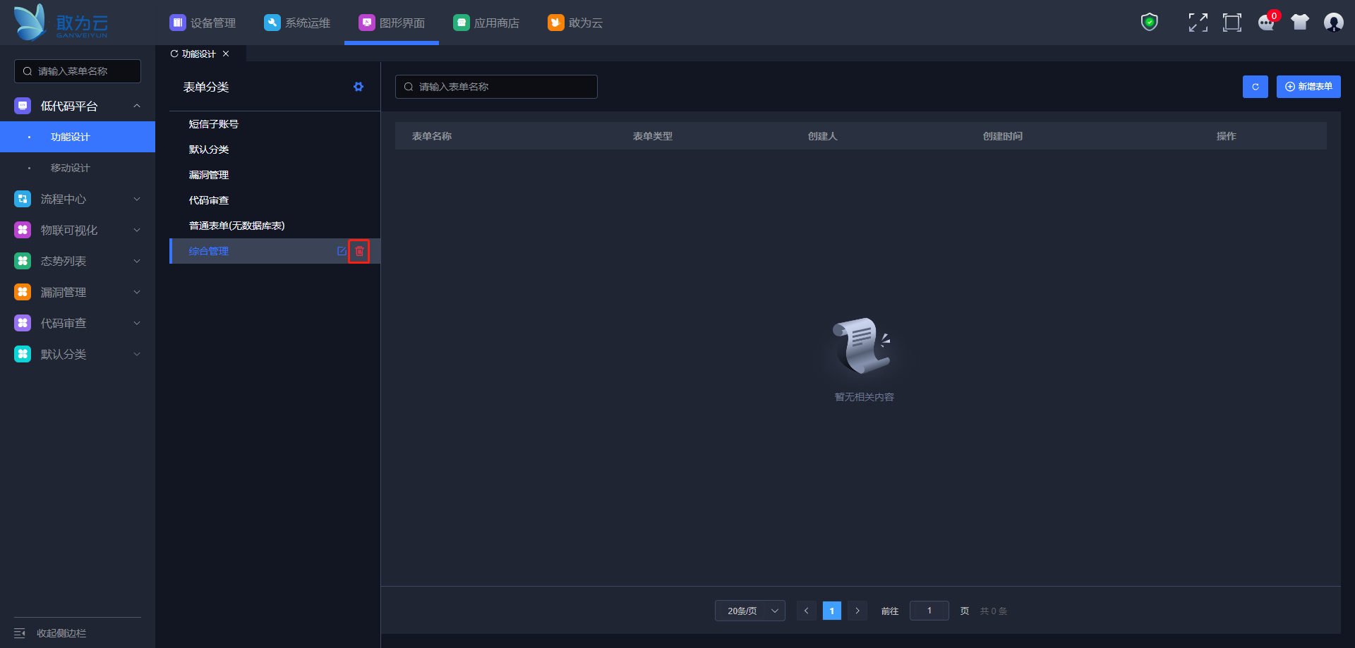 在新增的菜单界面可以对配置的表单进行增删改查操作。