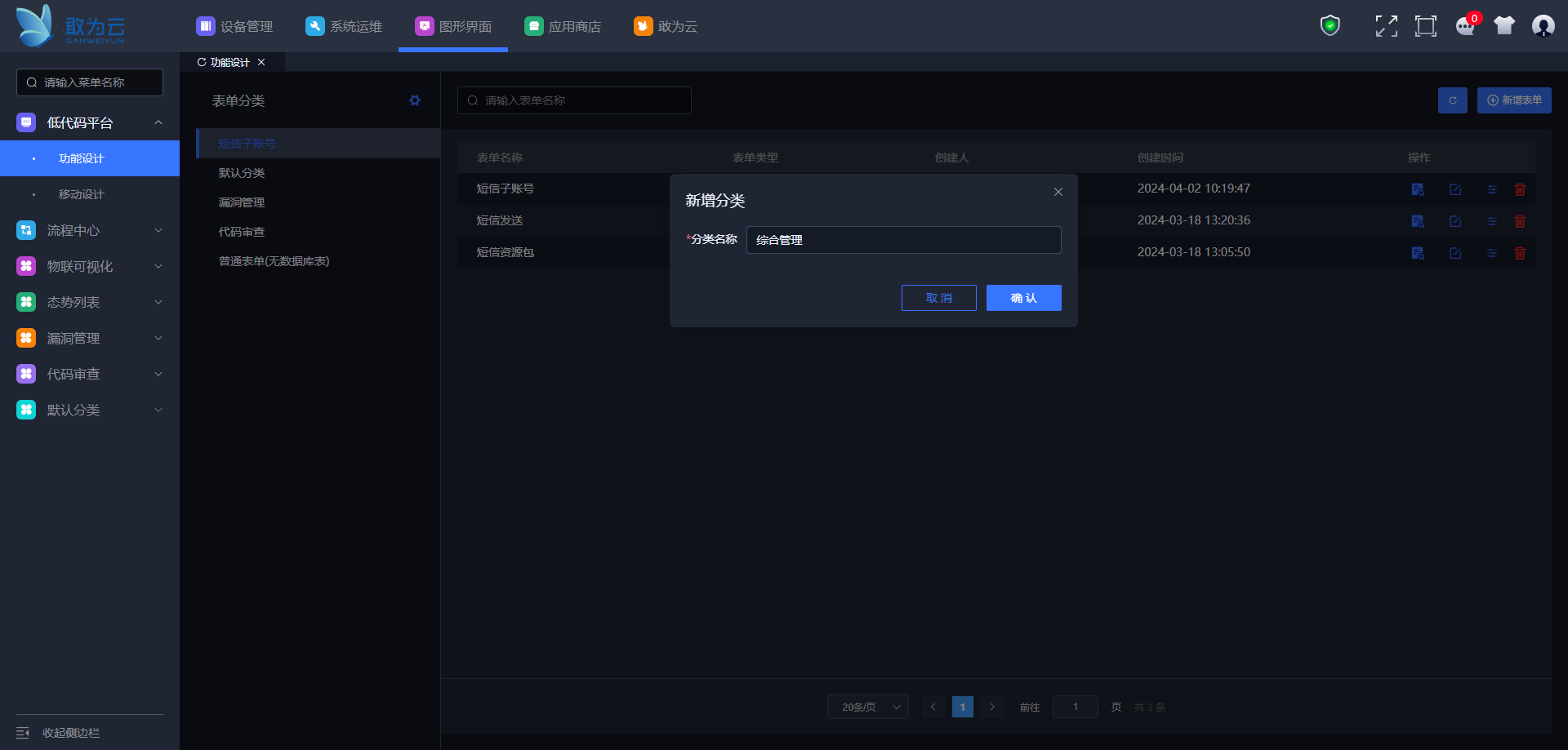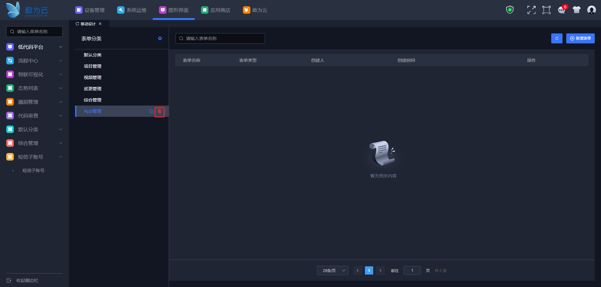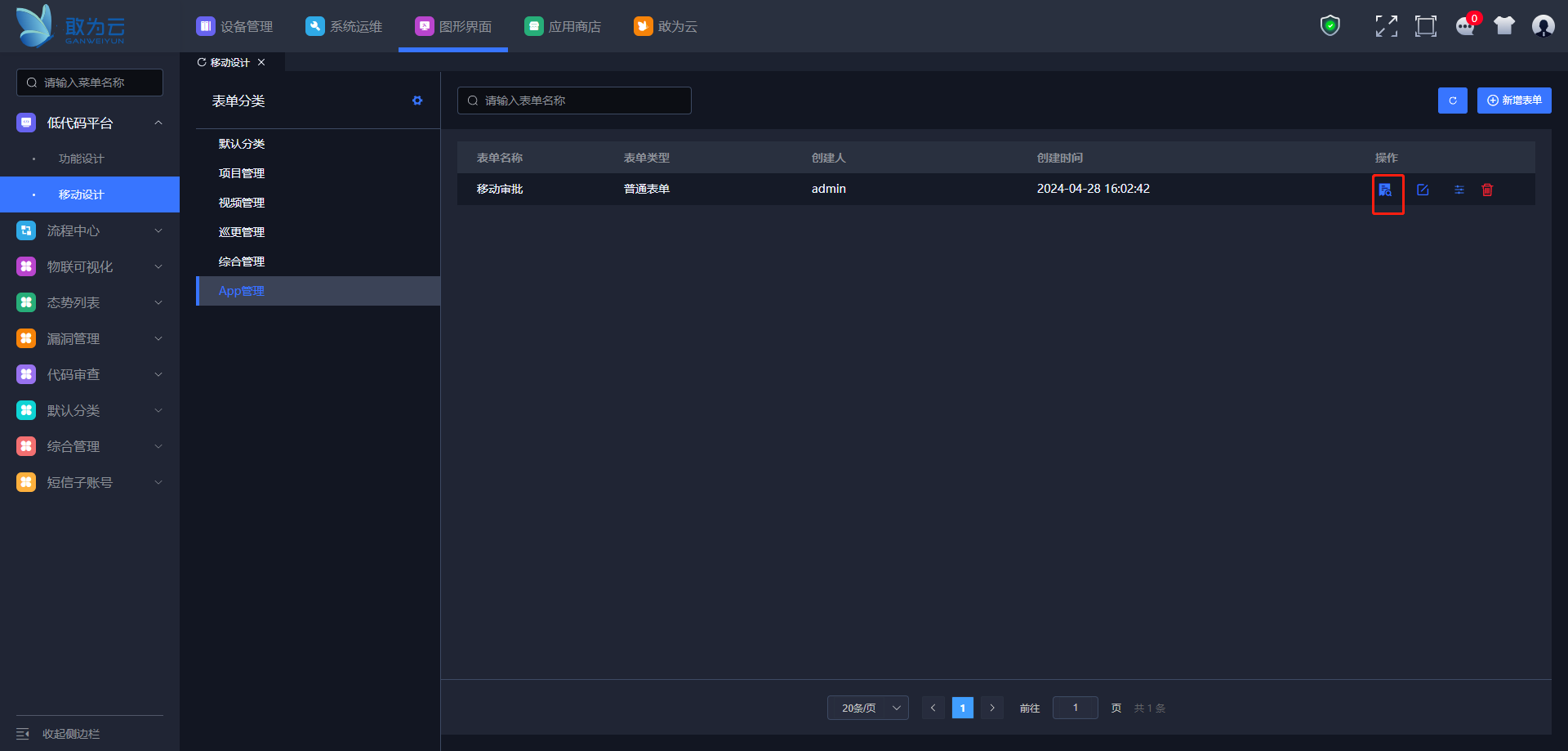 | 2 | 移动设计 | 支持移动端表单和表单分类的新增、删除、修改、查询操作,菜单页面生成 |