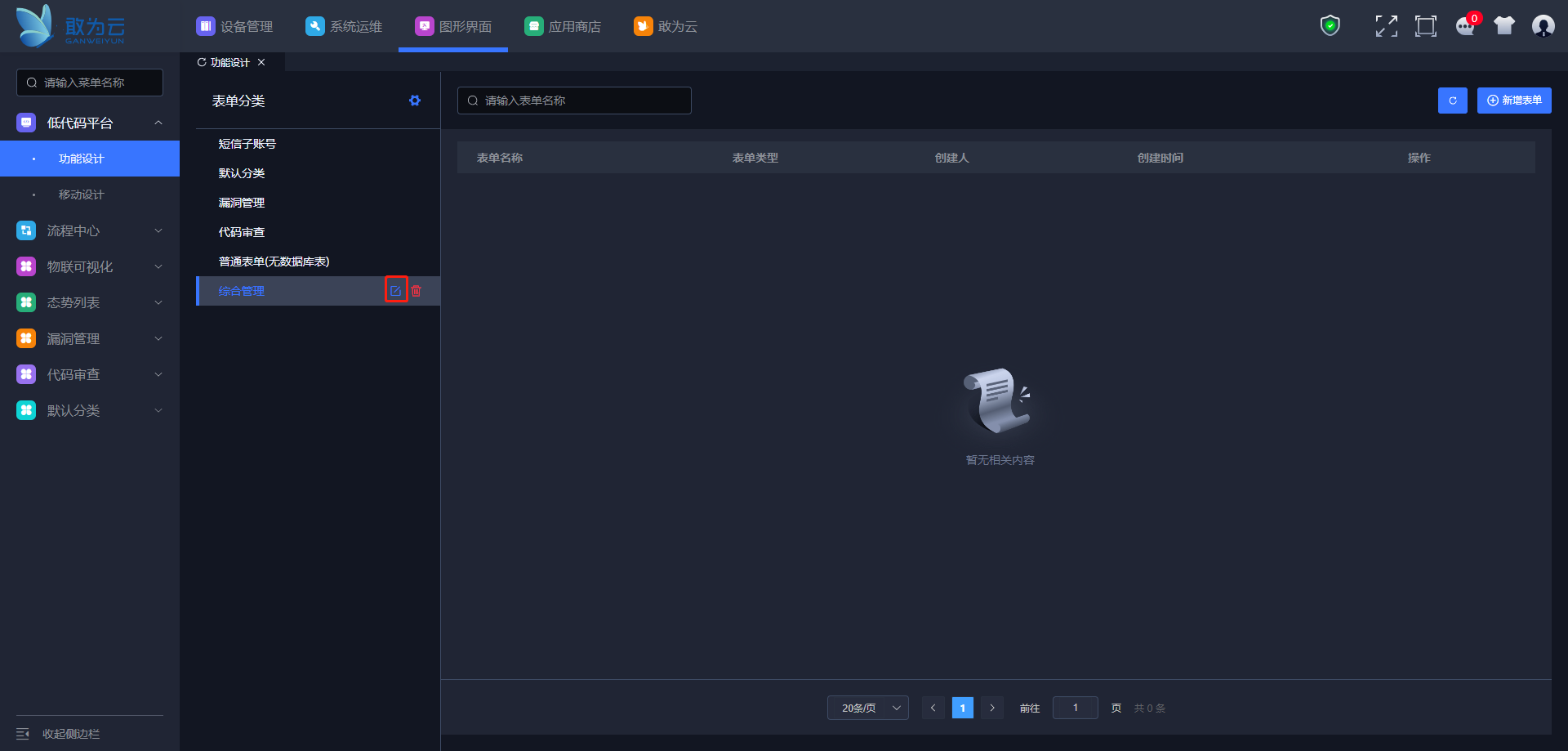 | 1 | 功能设计 | 支持pc端表单和表单分类的新增、删除、修改、查询操作,菜单页面生成 |