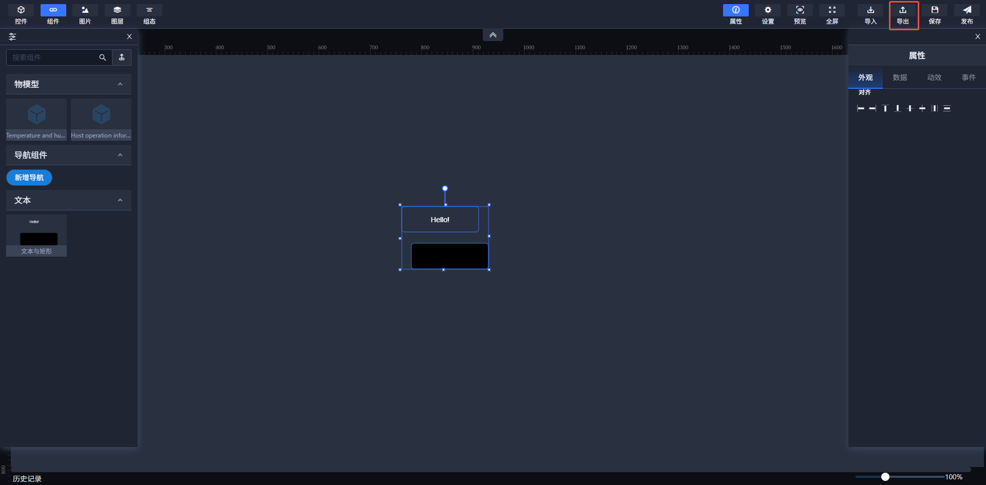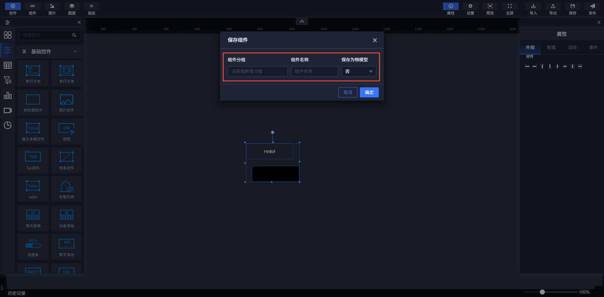 注:物模型控件保存成组件时“保存为物模型”下拉框选择是。
