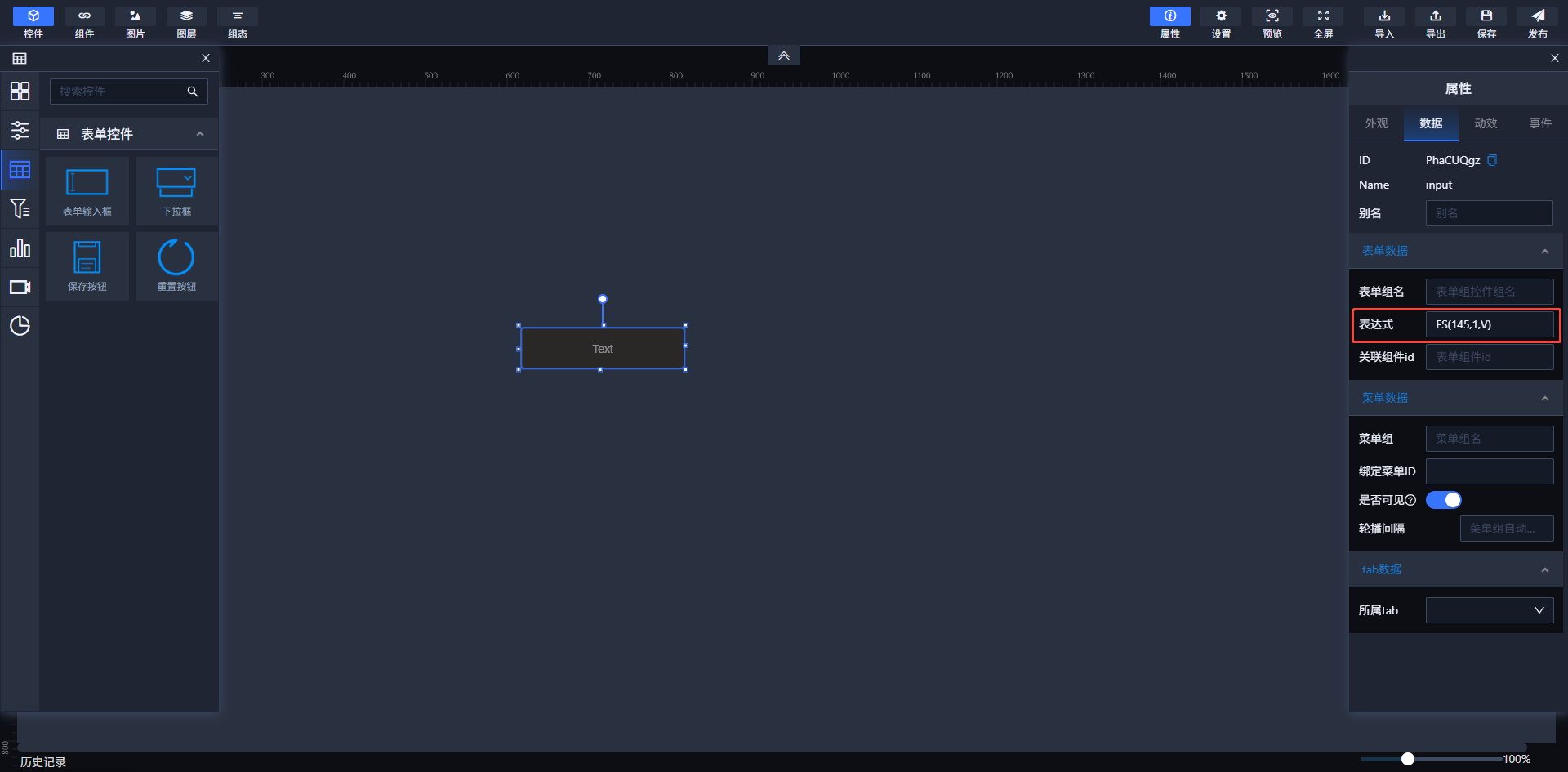 设置是否可见属性,可以控制控件在画布上显示或隐藏。