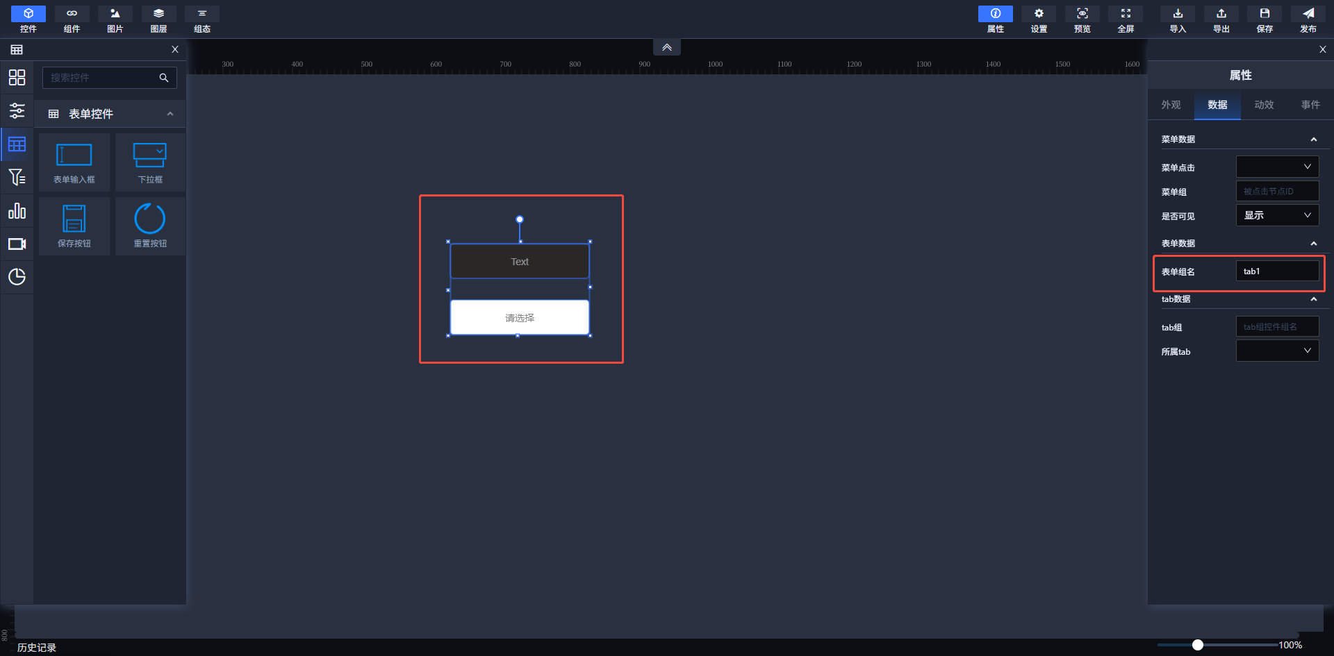- 选中全部目标表单控件(支持单选/多选/全选操作)