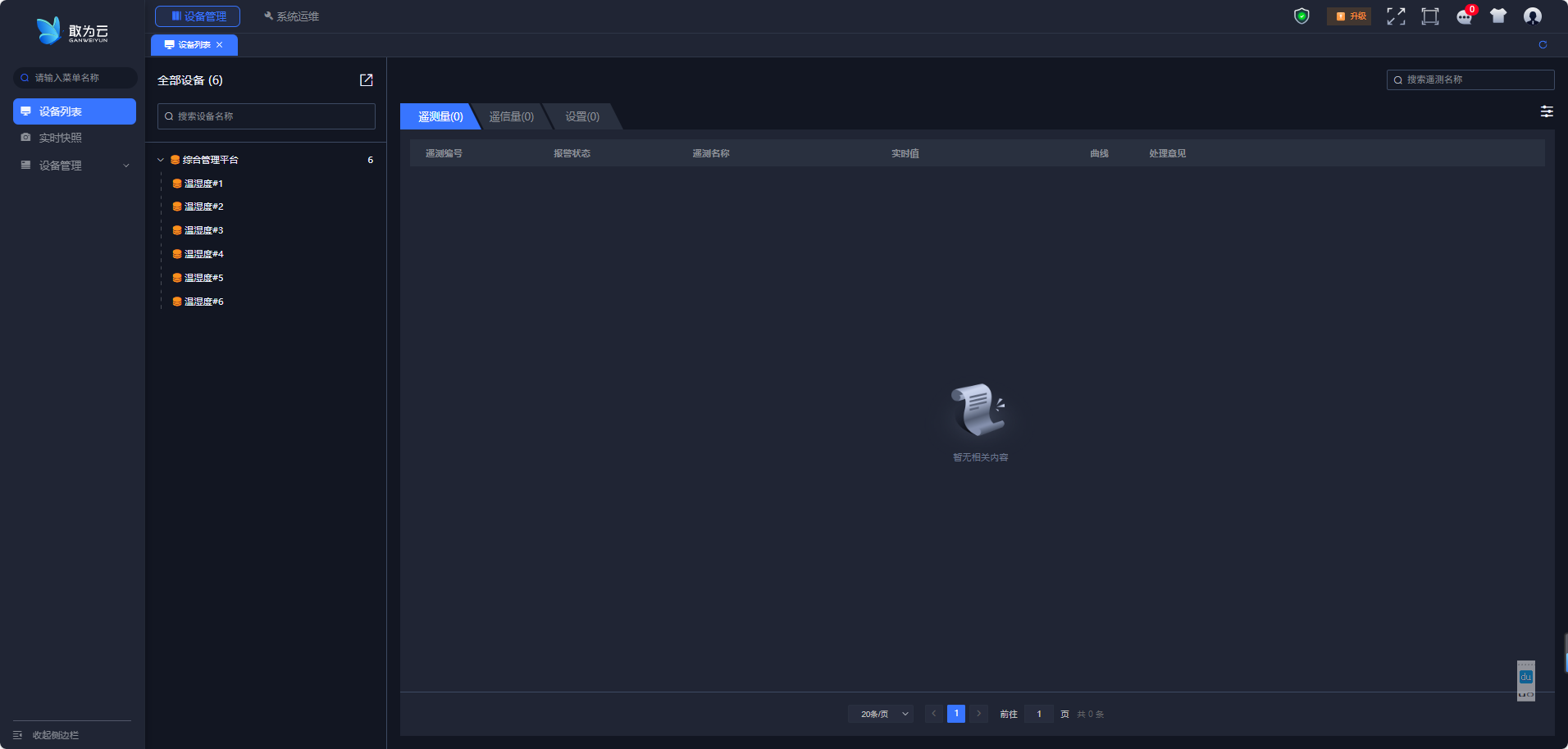 备服务器不和设备通信,设备状态显示为橙色,无数值。