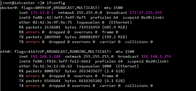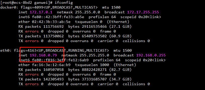 使用ifconfig查询ip。
