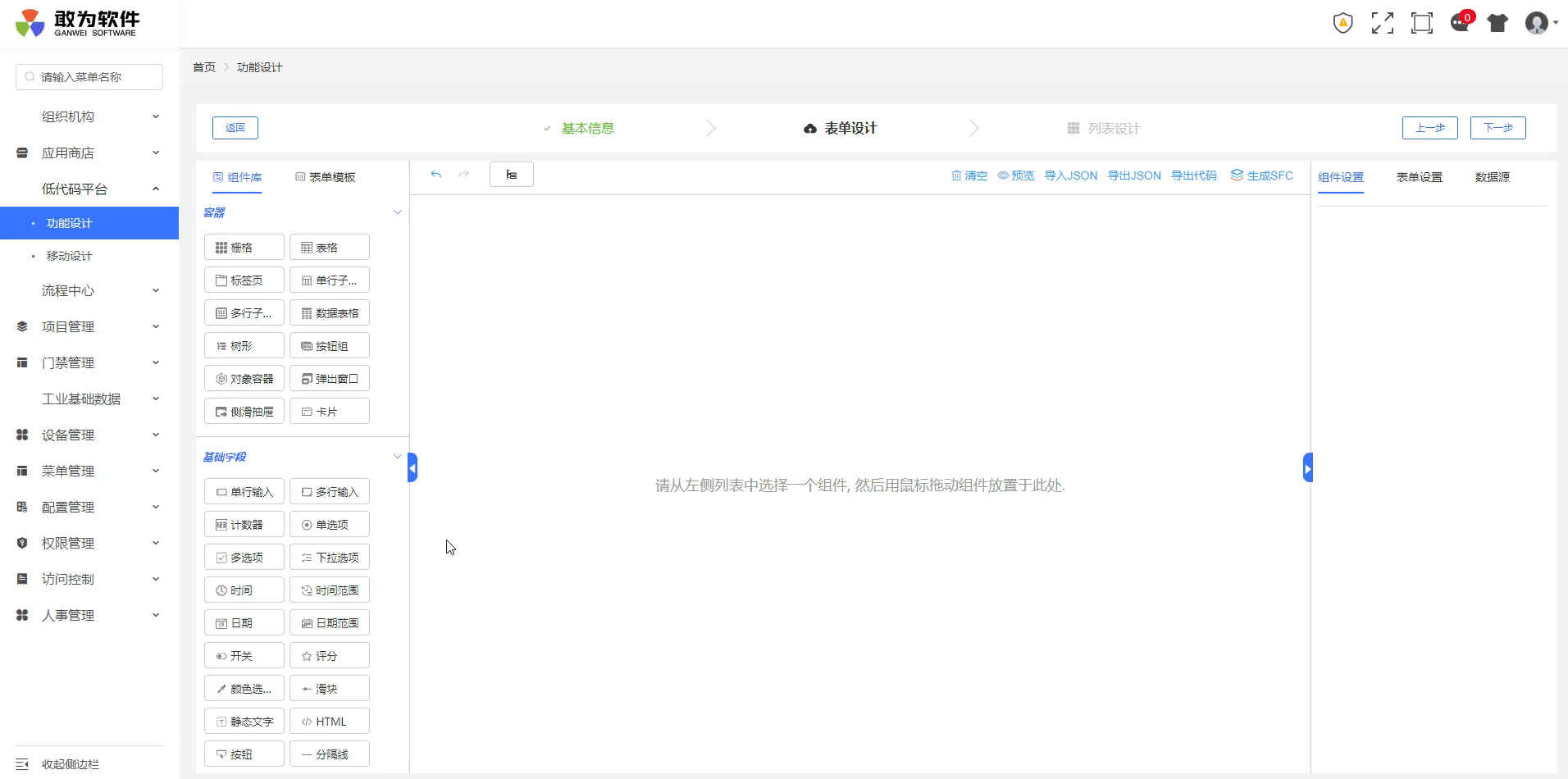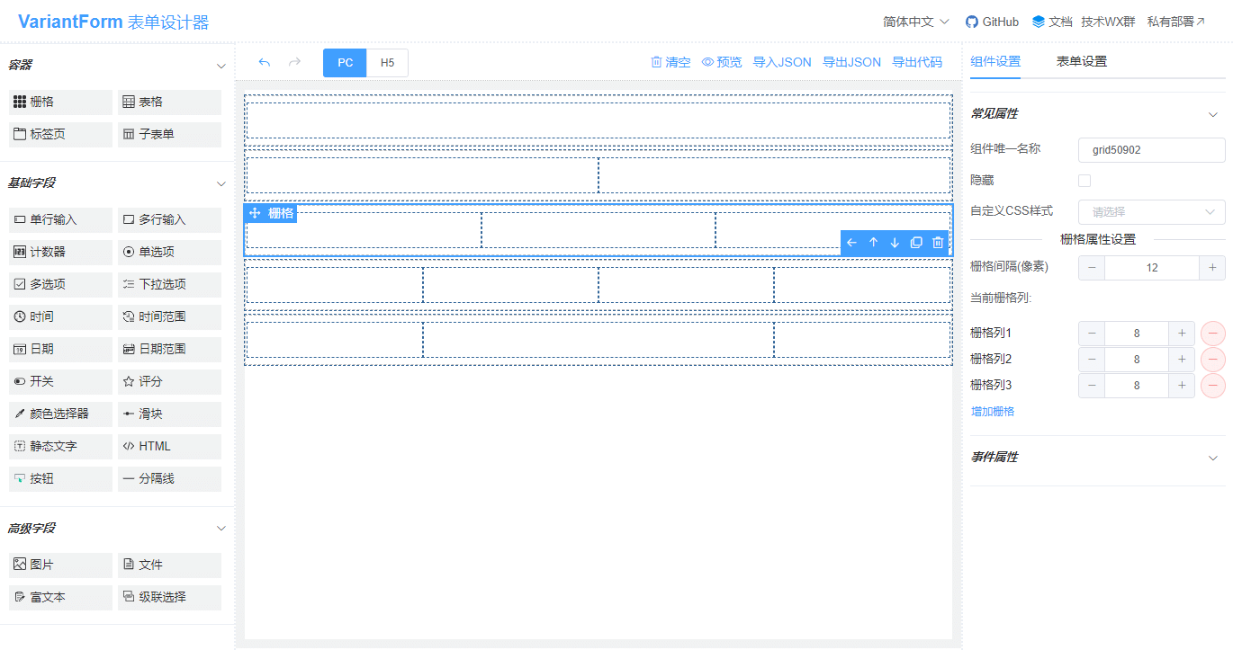 | clearDesigner | 清空设计器画布 | — |