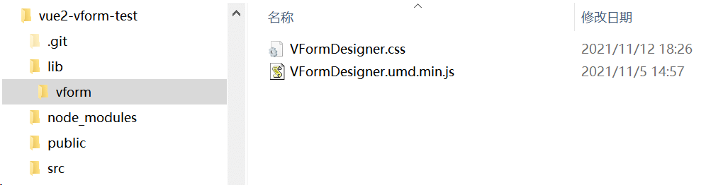 - 在项目根目录新建lib\vform,将上述两个文件复制到vform目录,目录结构如下所示: