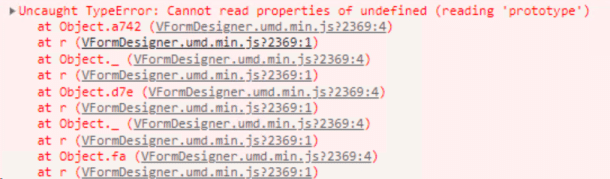 如果自行编译打包在另一个Vue项目中引入后出现下述问题,或者Vue项目引入VForm后卡顿不能正常启动: