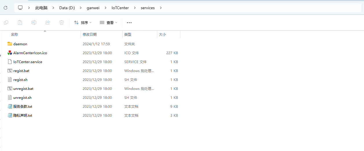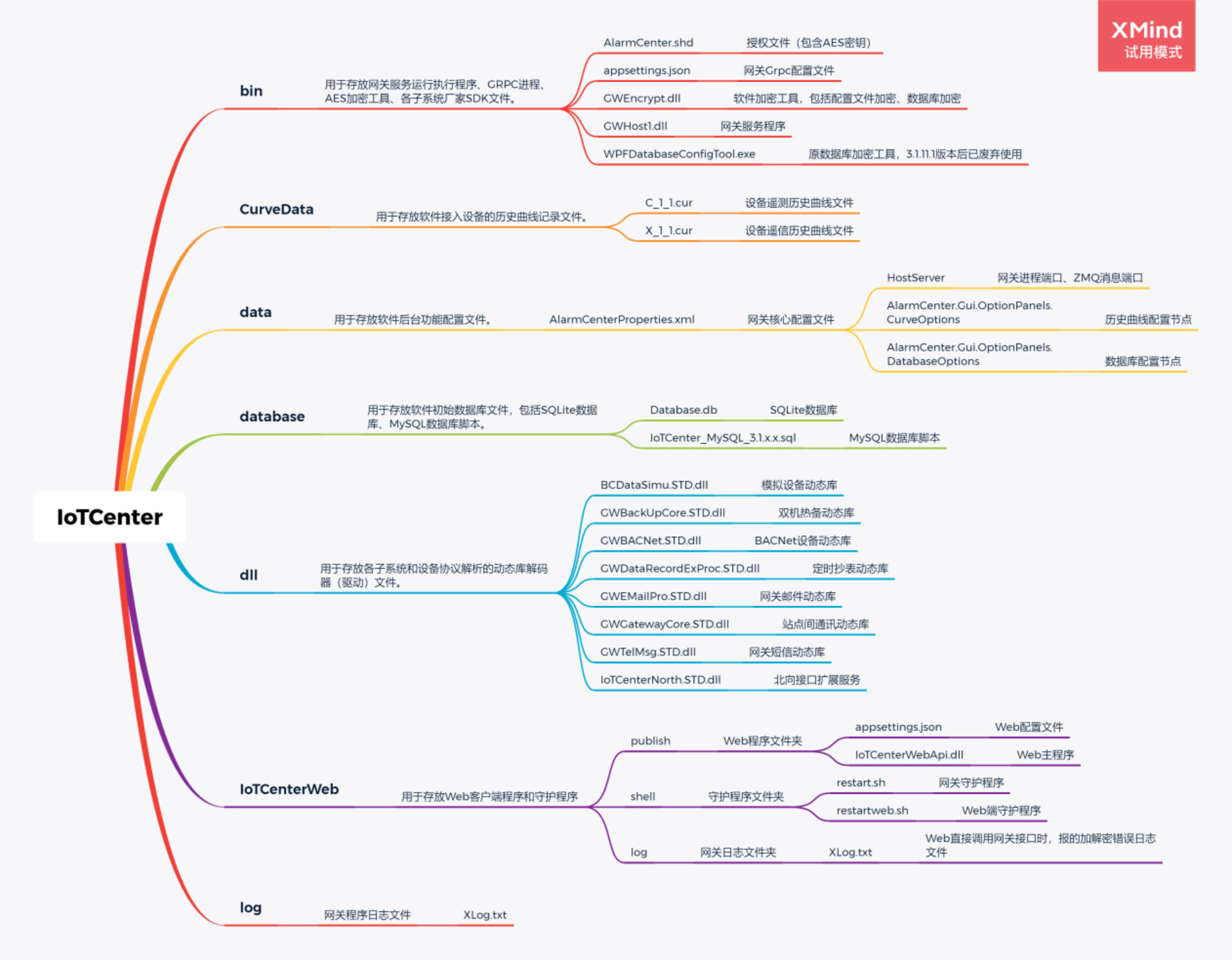 网关核心配置文件,位于IoTCenter\data\AlarmCenter中,主要用于配置网关端口、ZMQ消息端口、历史曲线存储、数据库连接存储等。