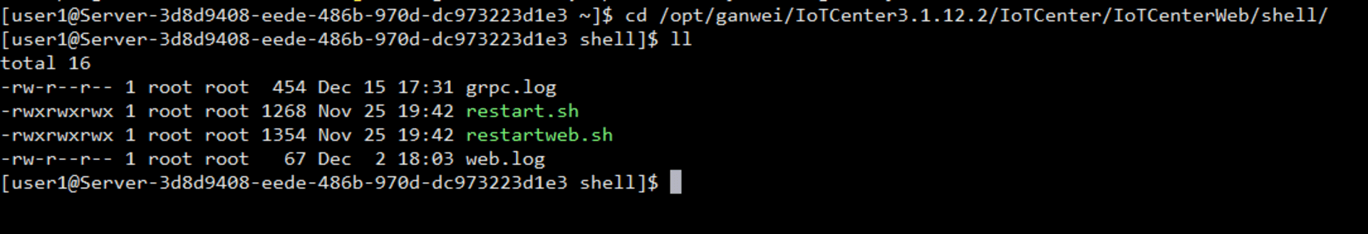 XMLDIR=/ganwei/data/ cp -rf $XMLDIR/* /opt/ganwei/IoTCenter/data/- 由其他备用目录原始插件包至运行目录下。