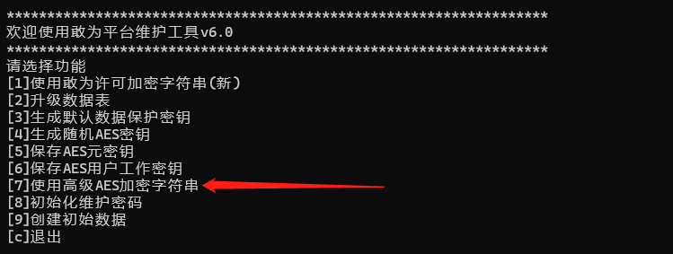 使用高级AES加密字符串:使用上述两级AES加密机制,对用户输入的足够复杂的字符串进行加密。输入命令【7】。
