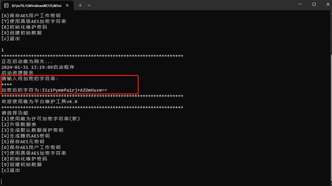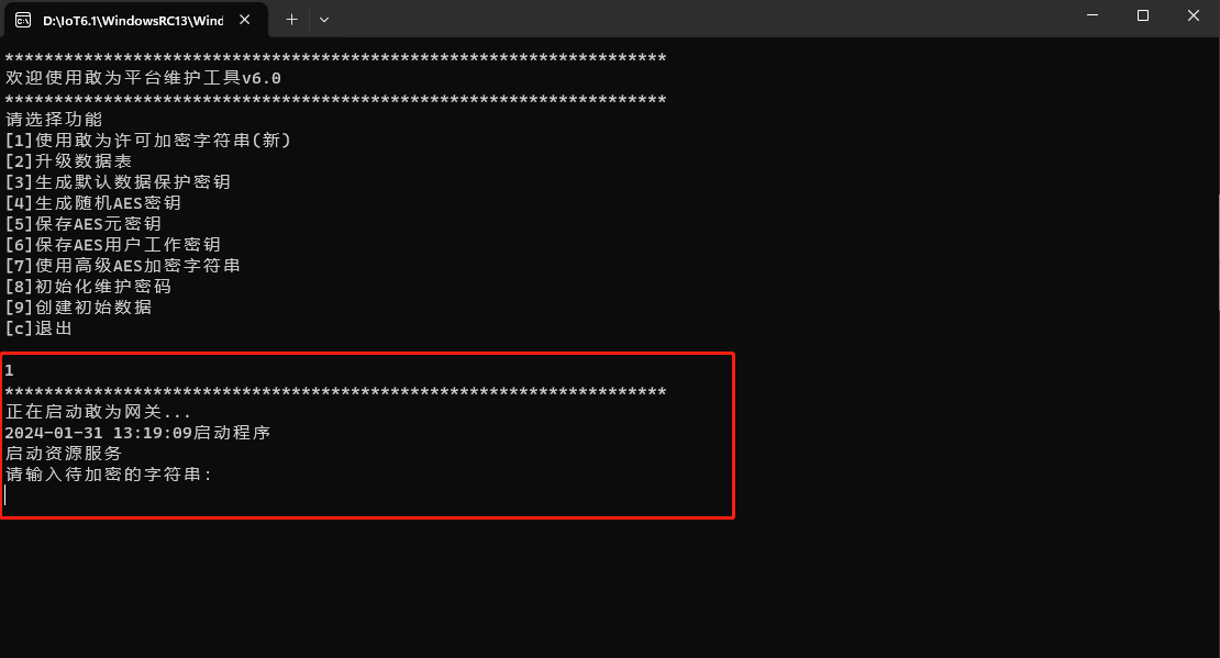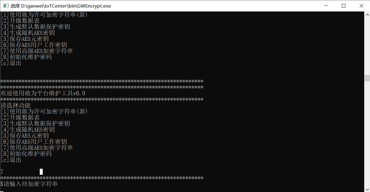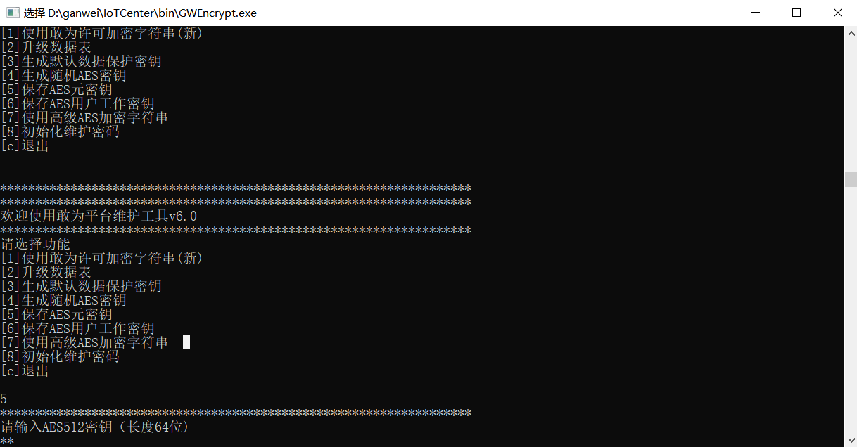 /opt/ganwei/iotcenter/dotnet/dotnet /opt/ganwei/iotcenter/bin/GWEncrypt.dll输入命令【1】